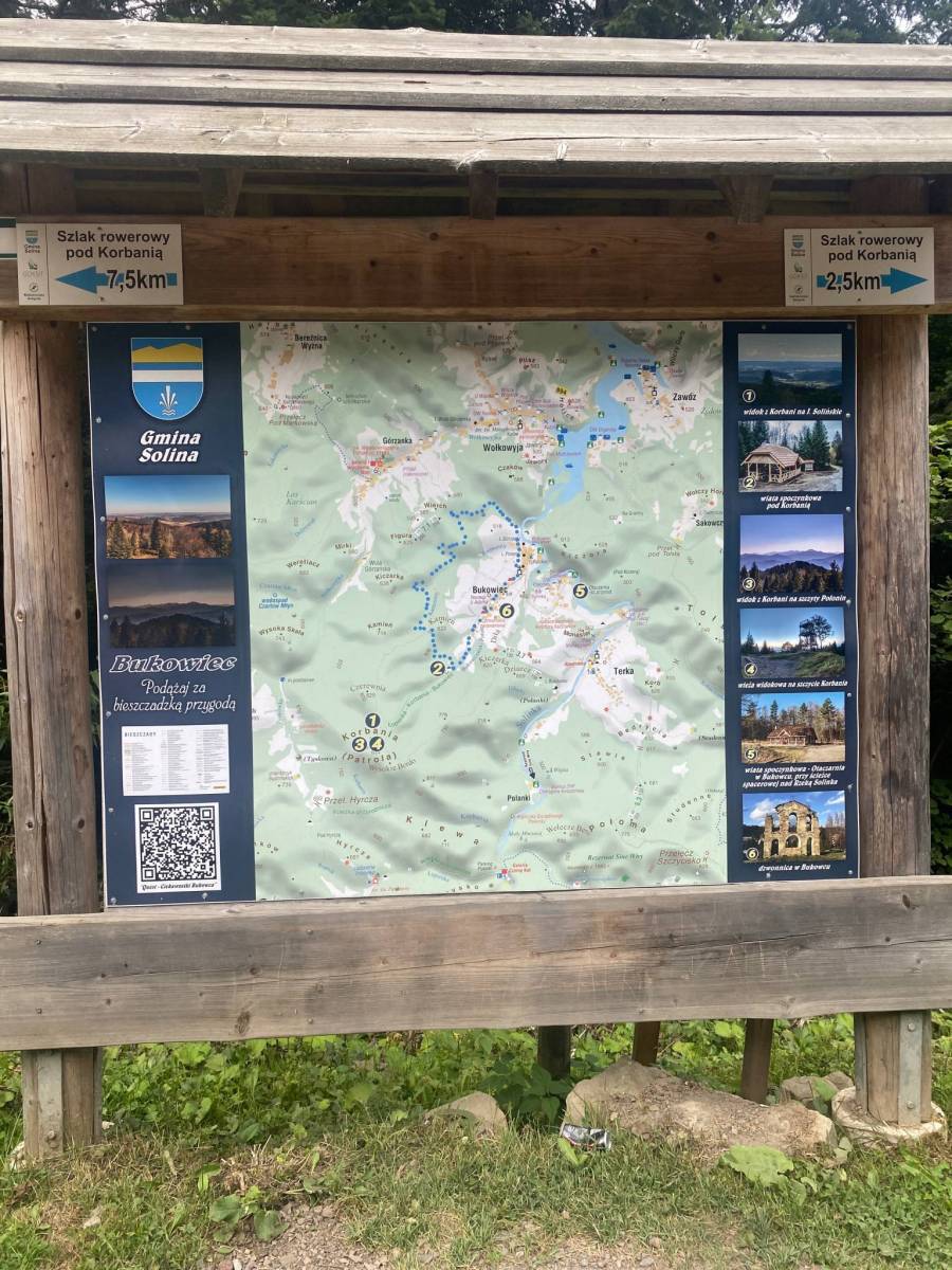 Mapa szlaku rowerowego uruchomionego w roku 2004 przez Grupą Partnerską „Zielone Bieszczady” - nieformalne trójsektorowe partnerstwo (organizacje pozarządowe, instytucje publiczne, partnerzy biznesowi), powstałe w celu zrównoważonego rozwoju przygranicznych polsko-słowacko-ukraińskich.