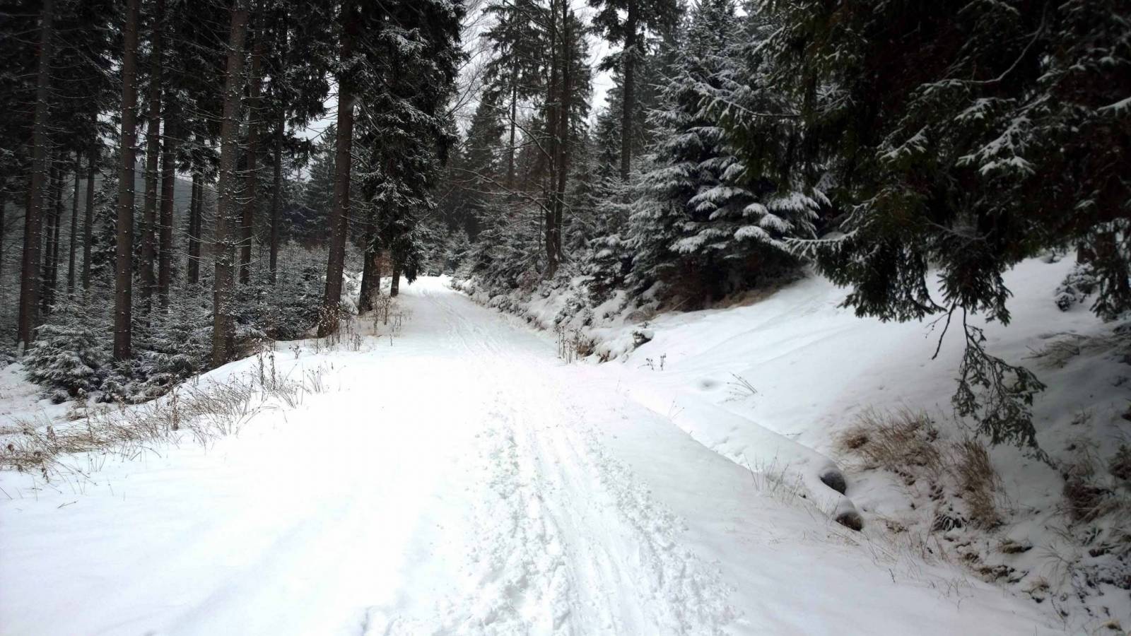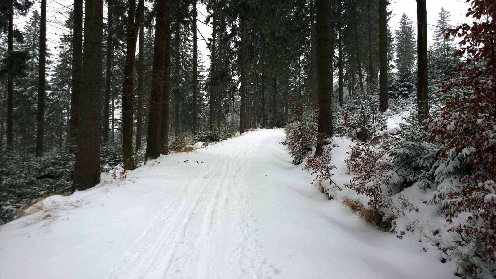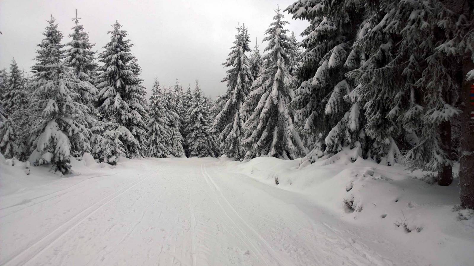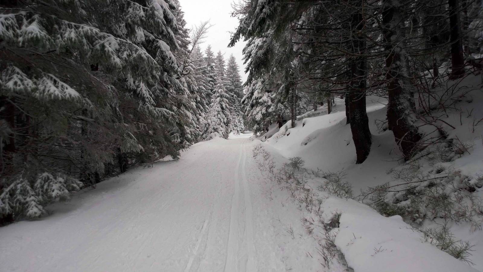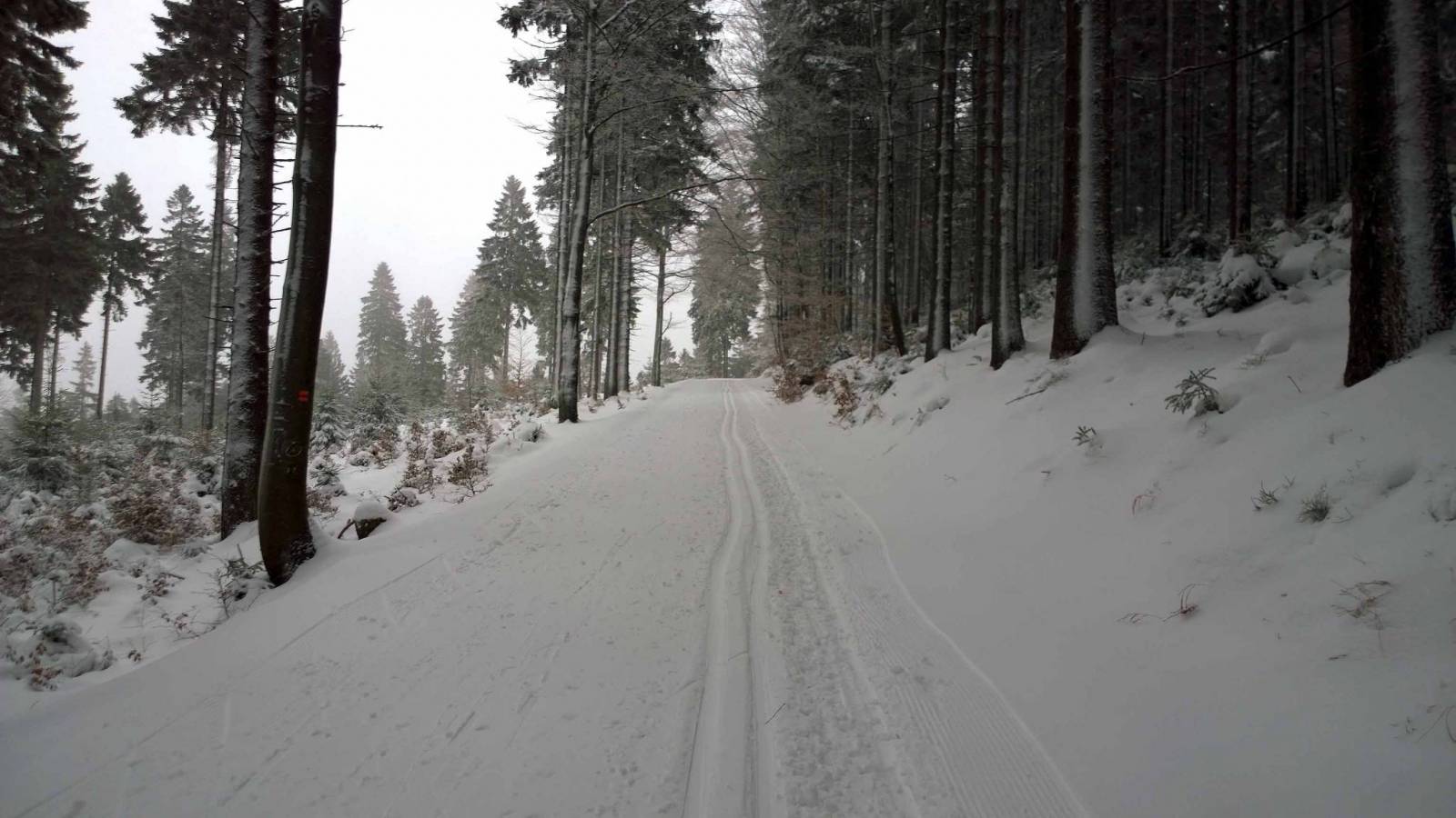 Trasy w Bielicach nie są jeszcze ratrakowane , ale narciarze oczywiście już są , tym bardziej ,że warunki śniegowe są bardzo dobre . Dziś wybieram najkrótszą trasę do Wielkiego Szengena , bo tam Czesi już na dobre rozpoczęli sezon . Trasy pięknie przygotowane , pogoda przyzwoita . Super