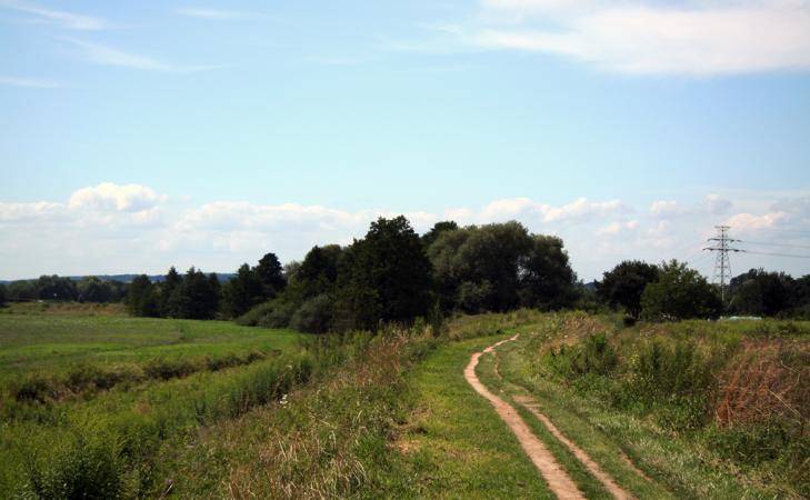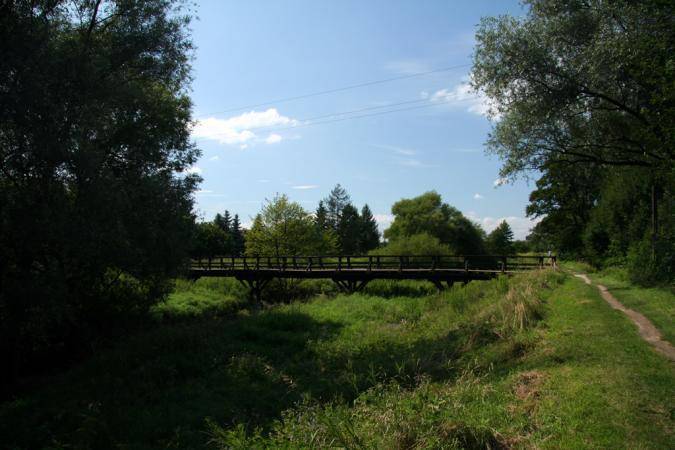 - tuż przed mostem zdjedź w piaszczystą scieżkę pieszo-rowerową