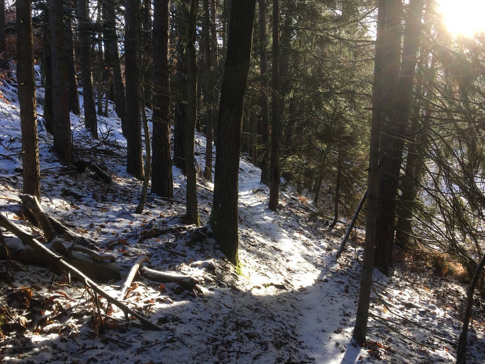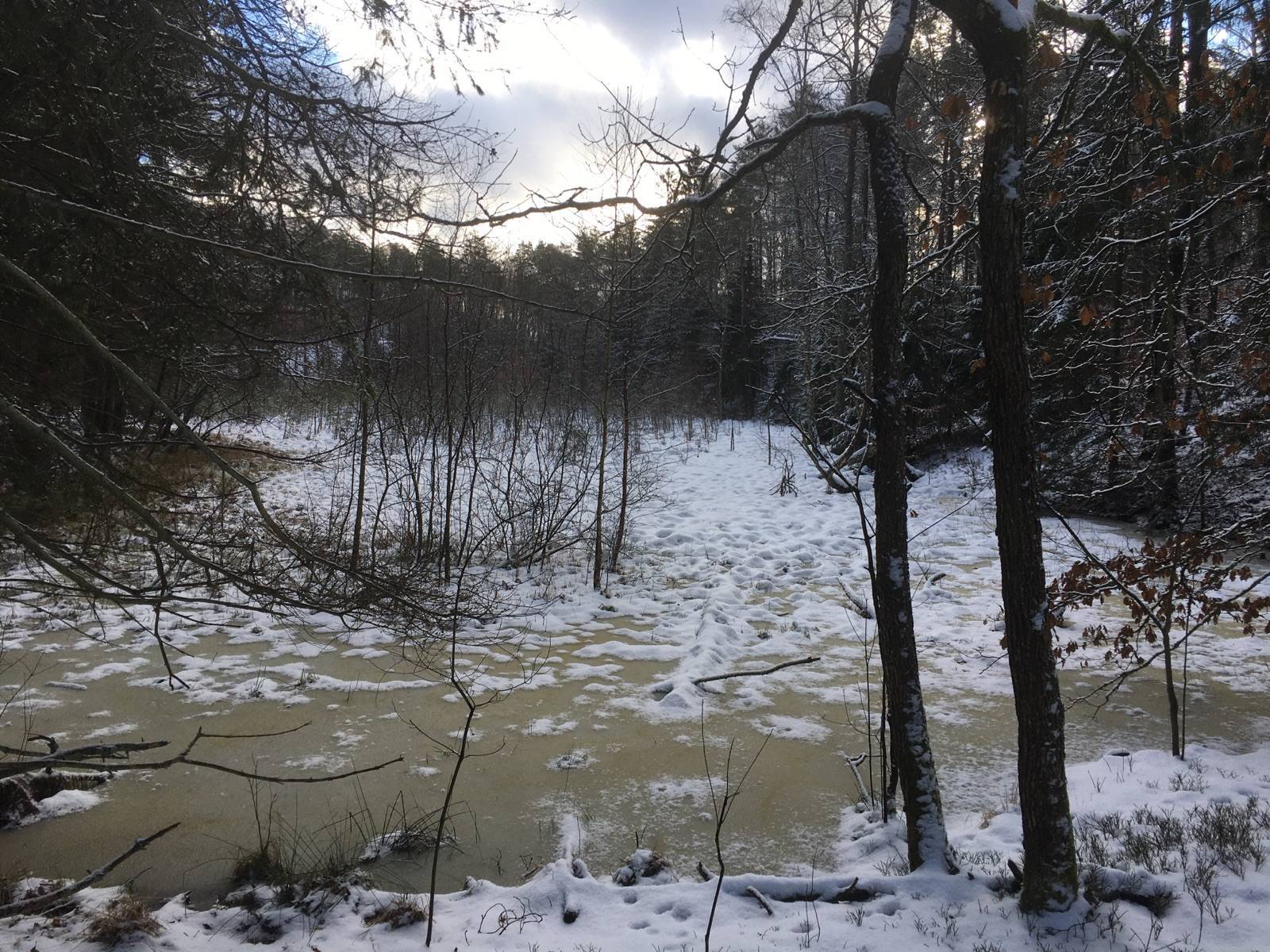 Zima w lesie sprzyja spacerom i marszom. Tym razem rozpoczęliśmy wędrówkę szlakiem kamieni granicznych (oznakowanie zielone). Przeszliśmy 13 kilometrów i wędrówkę zakończyliśmy przy ulicy Gdańskiej w Koszalinie.