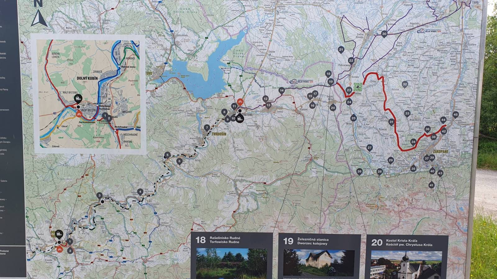 Mapa prezentuje region Magury Orawskiej na Słowacji, sięgający na północy do granicy z Polską. w tym miasta Namiestowo, Twardoszyn i okolice Jeziora Orawskiego. Na południe mapa sięga do linii miejscowości Podbiel, na zachód - kilkanaście kilometrów za Oravską Leśną.