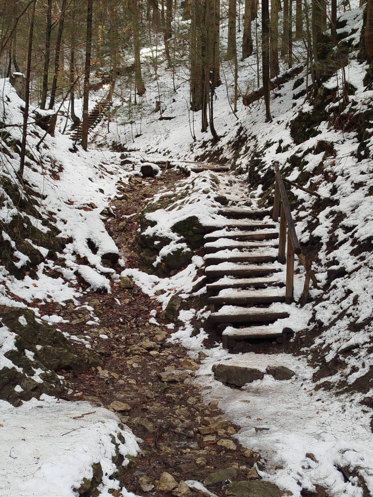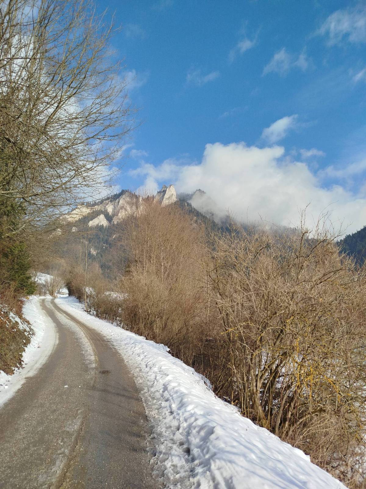 Wybrałem się na Trzy Korony. Gdyby nie raczki na buty nie było by szans wyjść na górę. Na szczycie wiało strasznie.