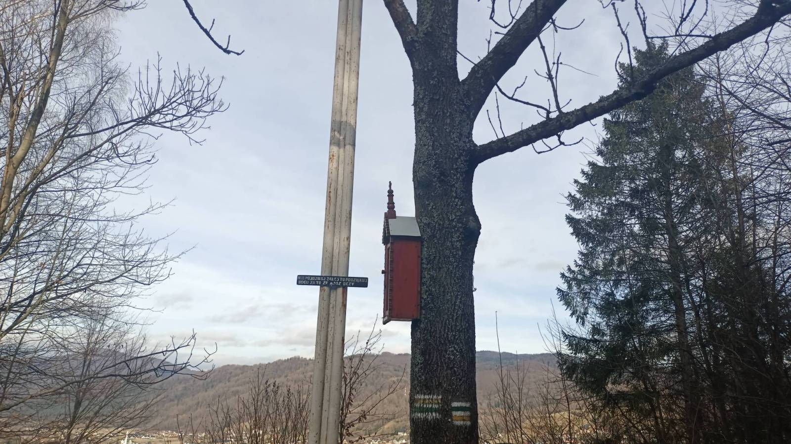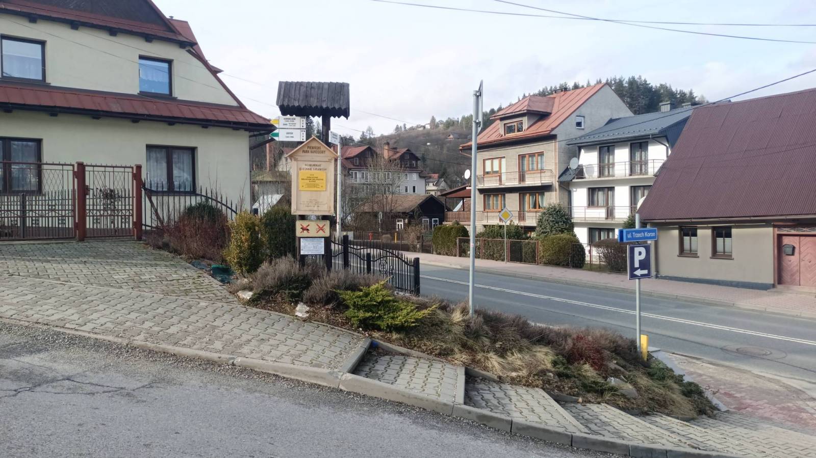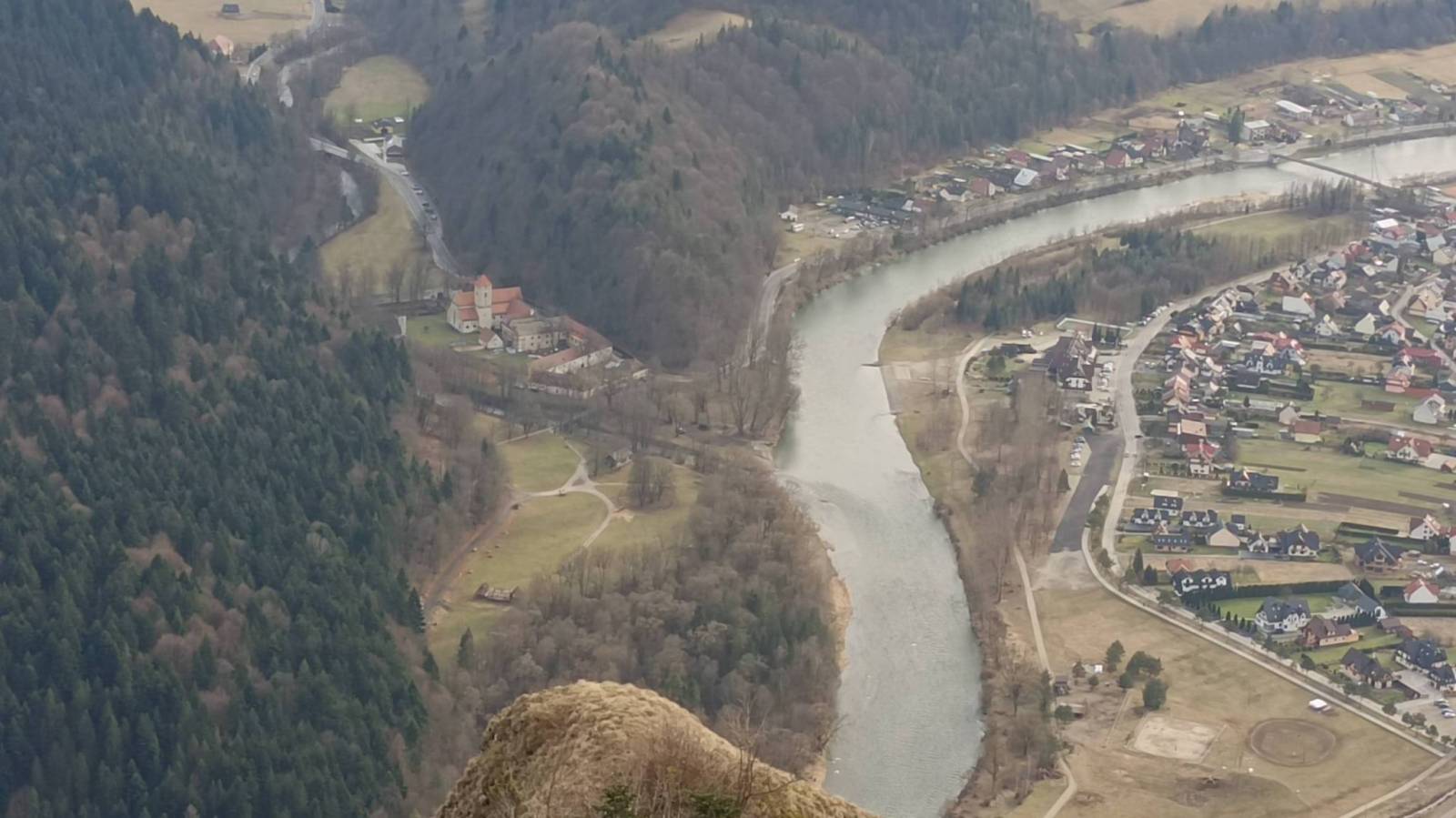 Popołudniowa wycieczka na najwyższy szczyt Pienin Właściwych czyli Trzy Korony. Szedłem z Krościenka szlakiem żółtym na przełęcz Szopka z której pięknie widać Tatry. Niestety zima w odwrocie wiec śniegu jak na lekarstwo choć poruszałem się często stokami północnymi. Na szczęście nie było też dużo błota bo fragmenty szlaku są dość strome. Z przełęczy szlakiem niebieskim na szczyt Trzech Koron na końcowym odcinku dwukierunkowymi platformami i schodami. Widoki ze szczytu powalające a wejście w okresie 15.11 do 30.04 jest bezpłatne. Powrót dalej szlakiem niebieskim przez rejon Zamkowej Góry z ruinami Zamku Pieniny z XIII wieku. Ścieżka odcinkami wąska i mocno oblodzona ale udało się bez raczków. Ze szlakiem żółtym którym podchodziłem połączyłem się na polanie Wyrobek i wróciłem do Krościenka tą samą drogą po drodze jeszcze zahaczając o rynek z zabytkową drewnianą zabudową.