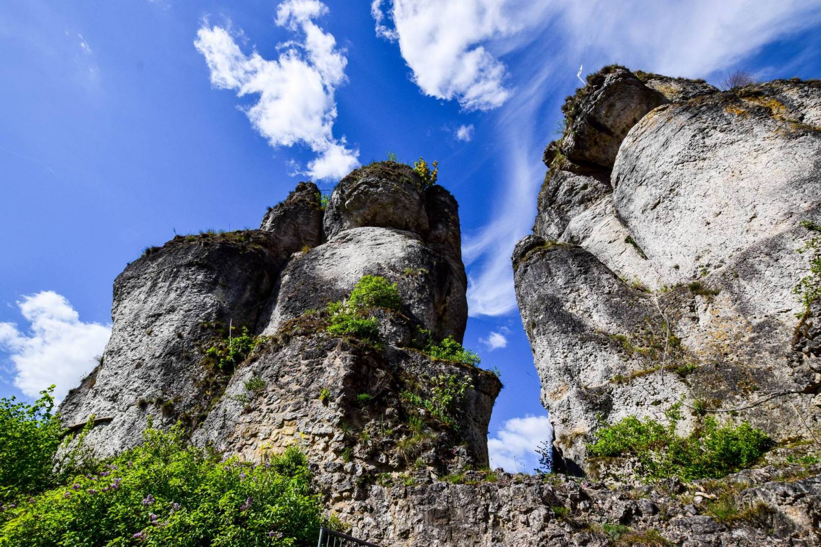 Romantyczny górski krajobraz tworzy Biała Jura z wapiennymi skałami, źródłami krasowymi, wcinającymi się głęboko dolinami i jaskiniami z potężnymi naciekami.
