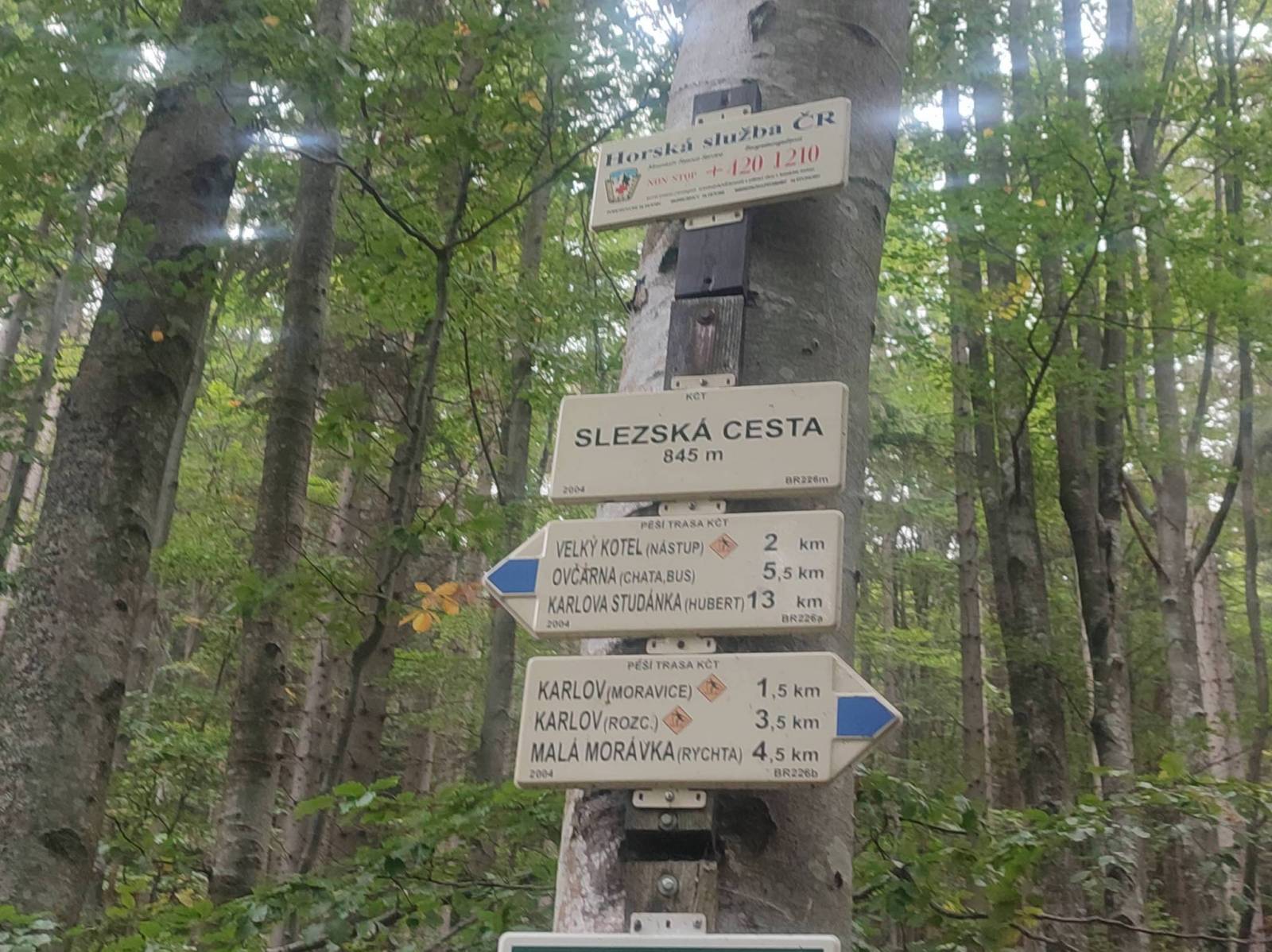 Dzisiejszą trasę zaczynam na bezpłatnym parkingu w miejscowości Karlov pod Pradedem. Zamierzam wejść szlakiem niebieskim, dalej grzbietami czerwonym i zejść do parkingu zielonym. Niestety na górze pogoda weryfikuje moje plany. Zachmurzenie, silny wiatr i ogólny ziąb zatrzymuje mnie na chwilę w chacie Sabinka, gdzie rozgrzewam się zupą gulaszową. Na parking schodzę szlakiem żółtym. Mimo pogody trasę uważam za udaną: fajne lasy i ogólnie zadbane szlaki. Suma podejść za mapa-turystyczna.pl to 838m. Wrócę tutaj niebawem aby zrealizować pierwotny plan.