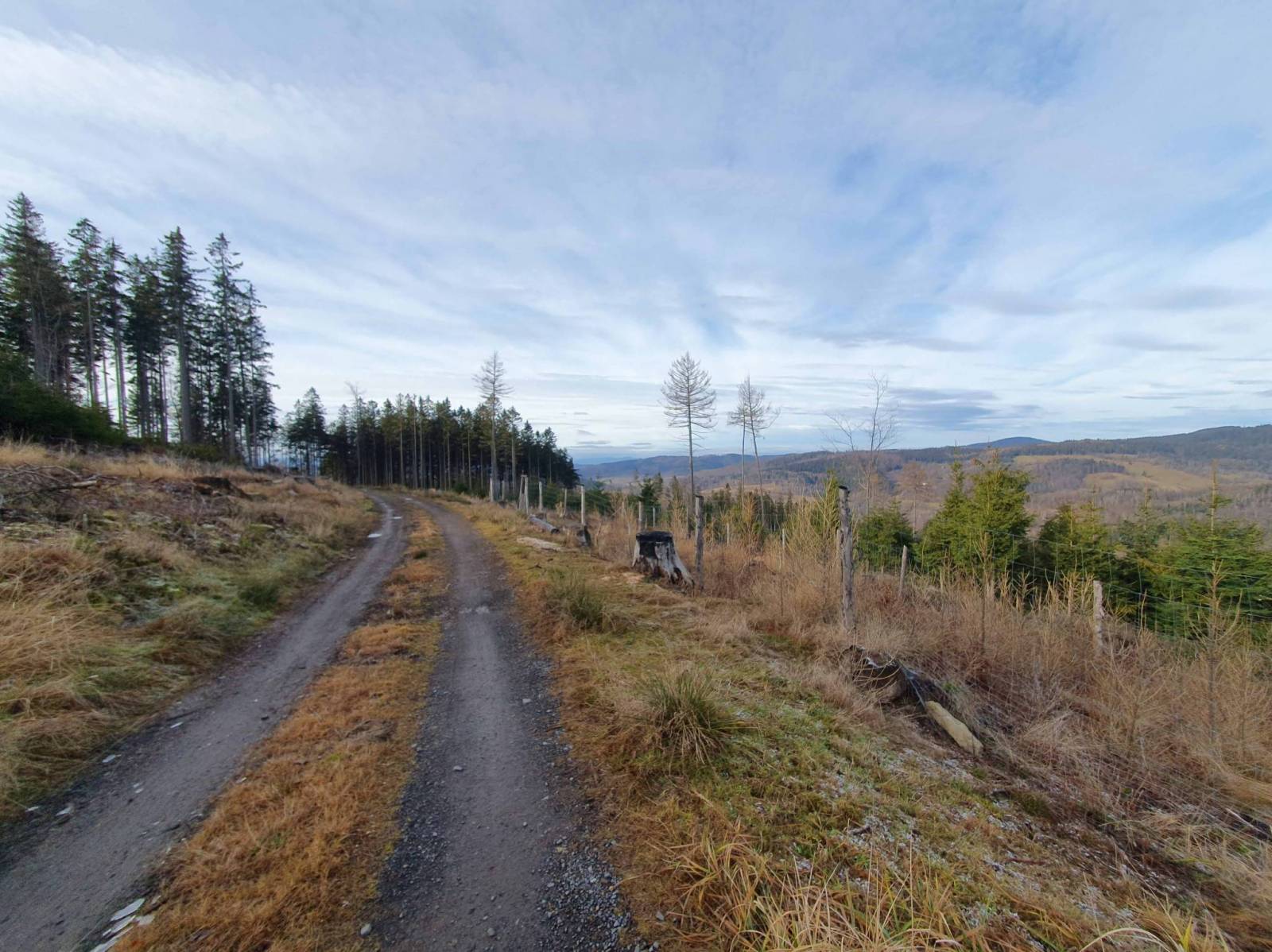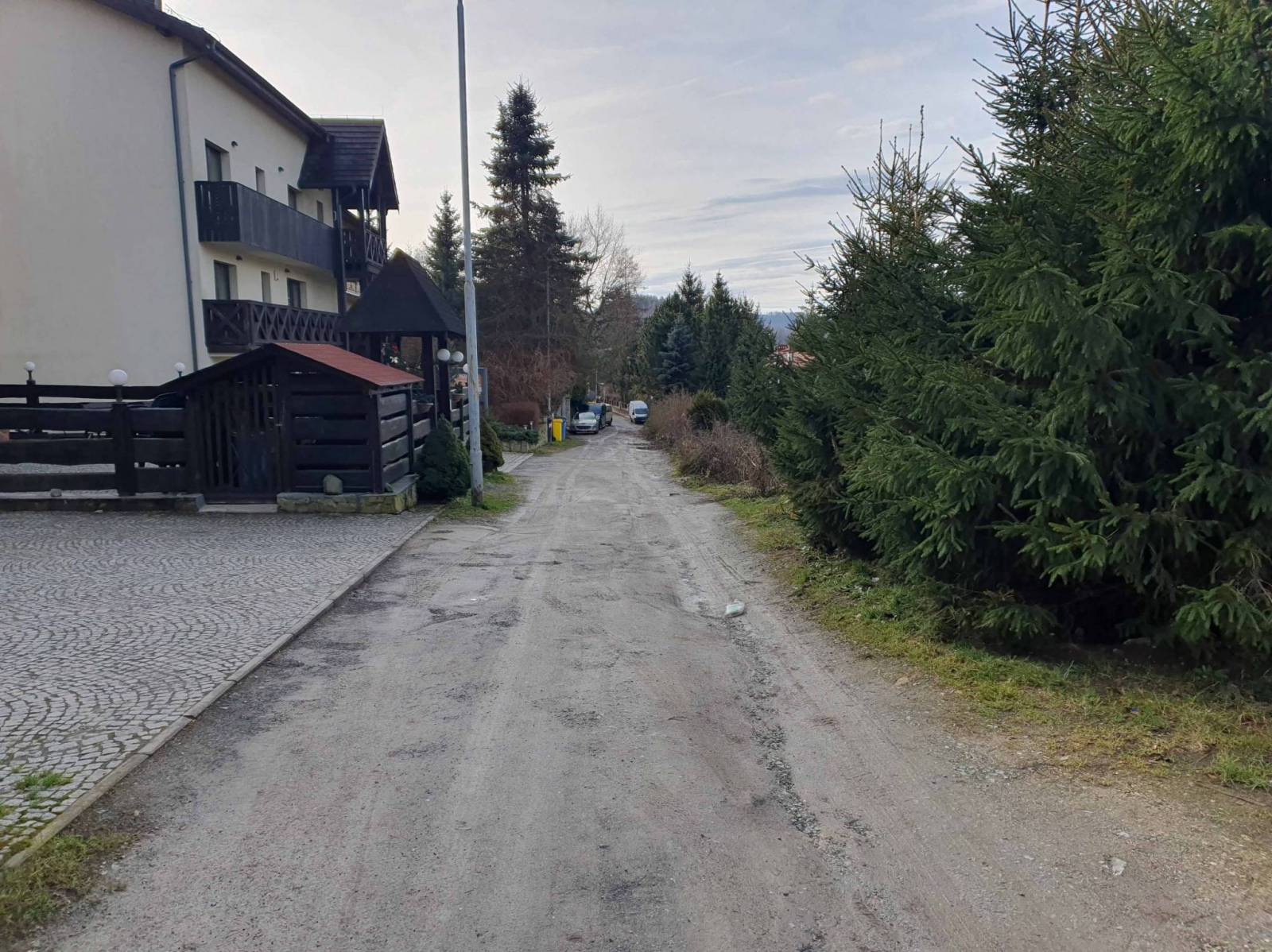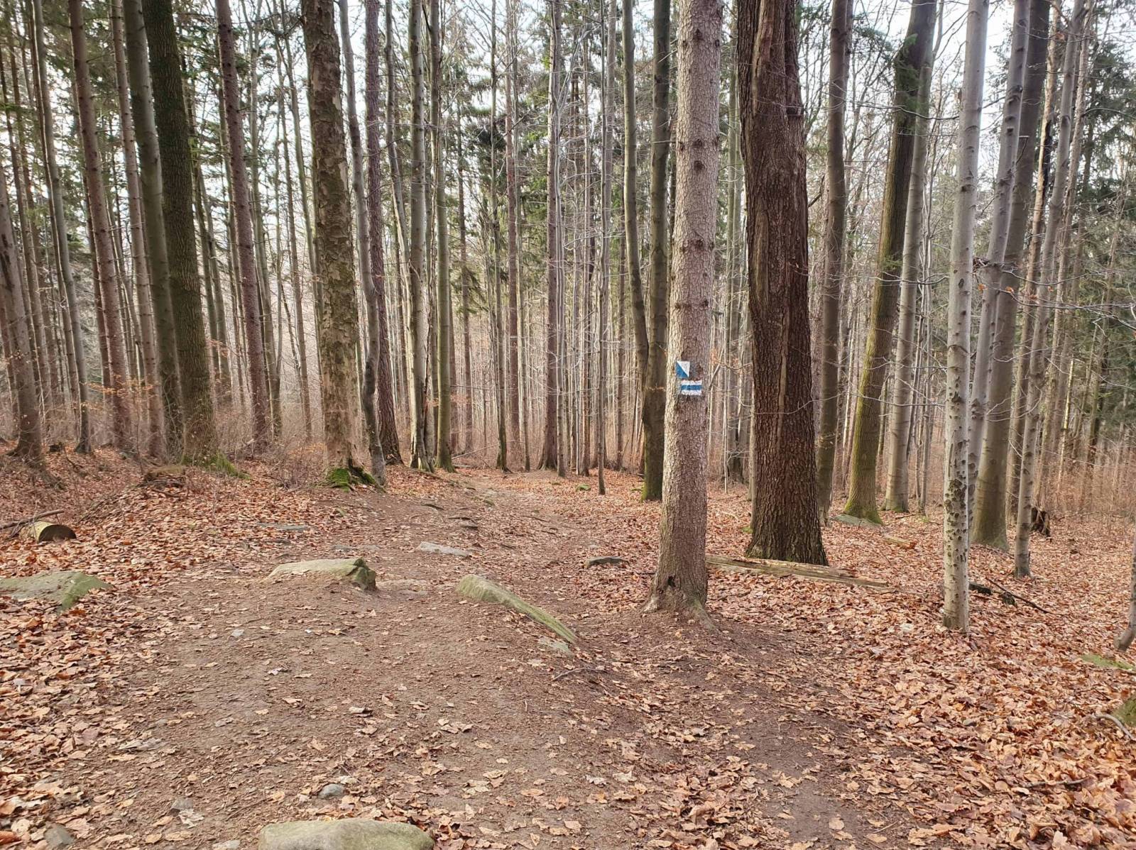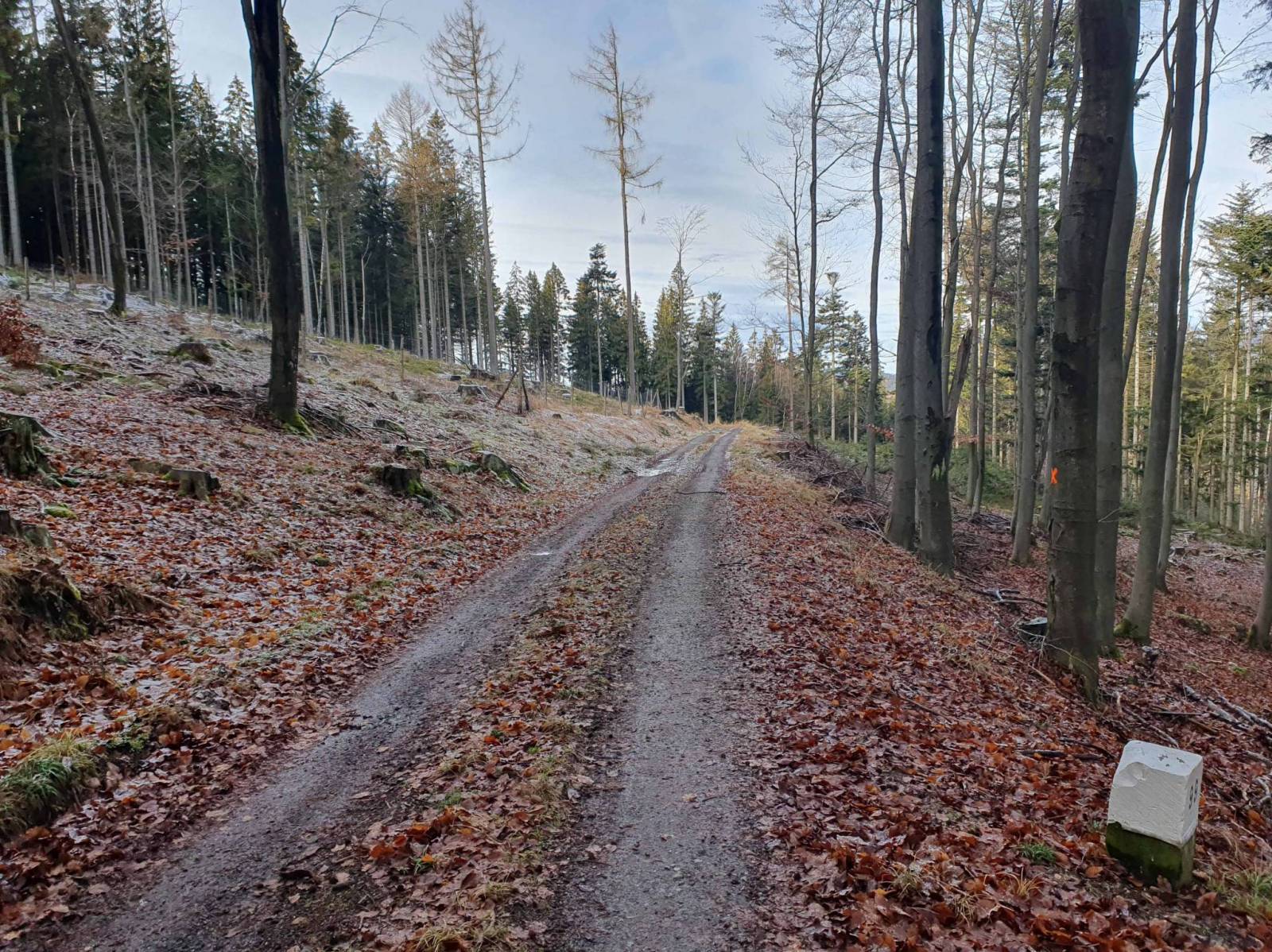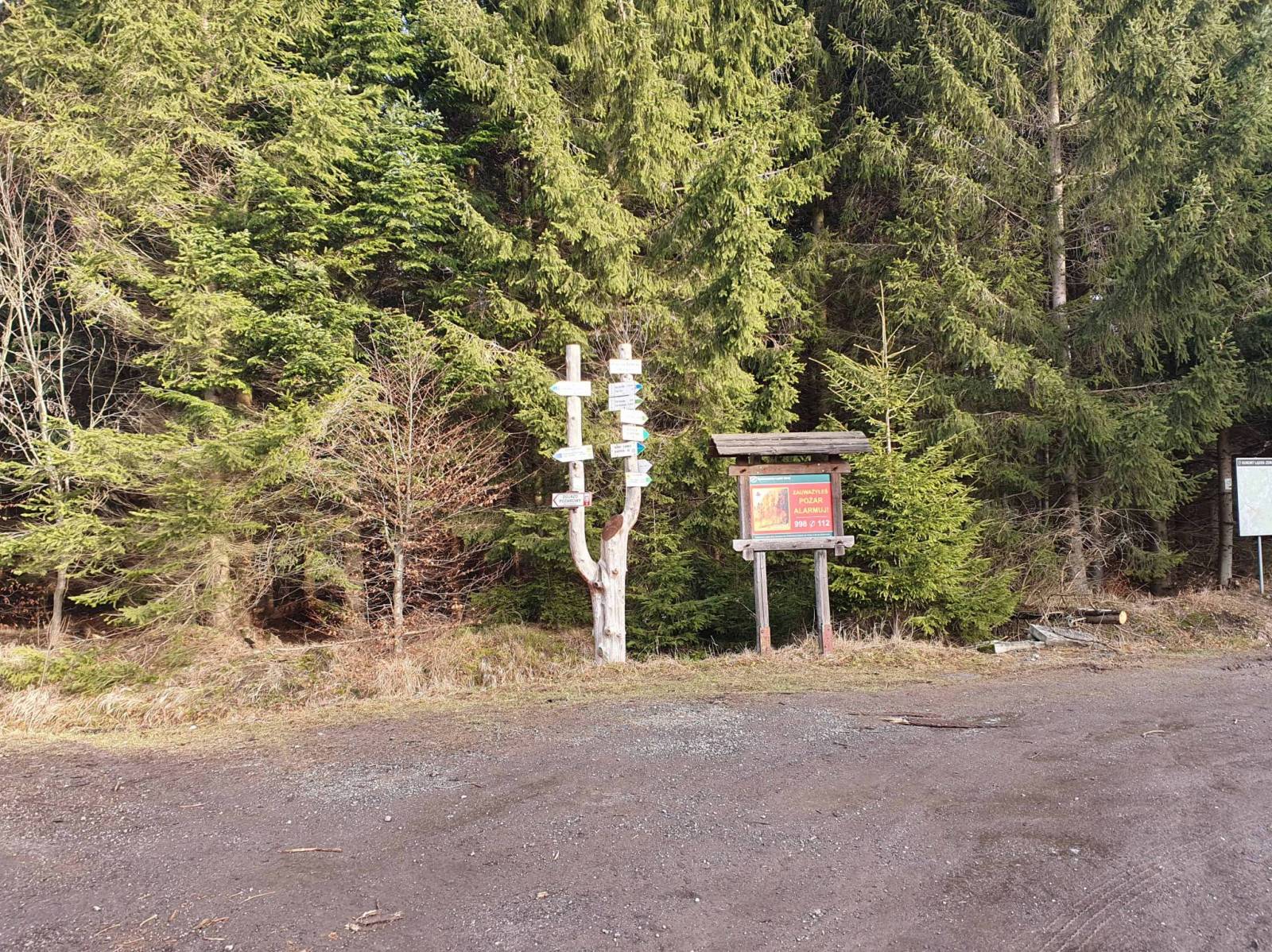 Co prawda byłem tu już kilka dni temu , ale jakoś nie mogłem zrozumieć przebiegu singla Samotnik , gdzieś też przeczytałem ,że została lekko zmieniona pętla Trojak . Poszukiwania rozpocząłem na Rozdrożu Zamkowym , następnie zjechałem w kierunku stoku narciarskiego w Lądku Zdroju . Śnieg na stoku tylko techniczny , ale chętnych i tak nie brakuje . Po analizie mapki , wróciłem do Lądka i w okolicy DW Złoty Łan , w lesie , niedaleko stoku narciarskiego znalazłem wjazd na pętlę . W Lądku brakuje chyba tabliczek informacyjnych , ale to się pewnie jeszcze zmieni .