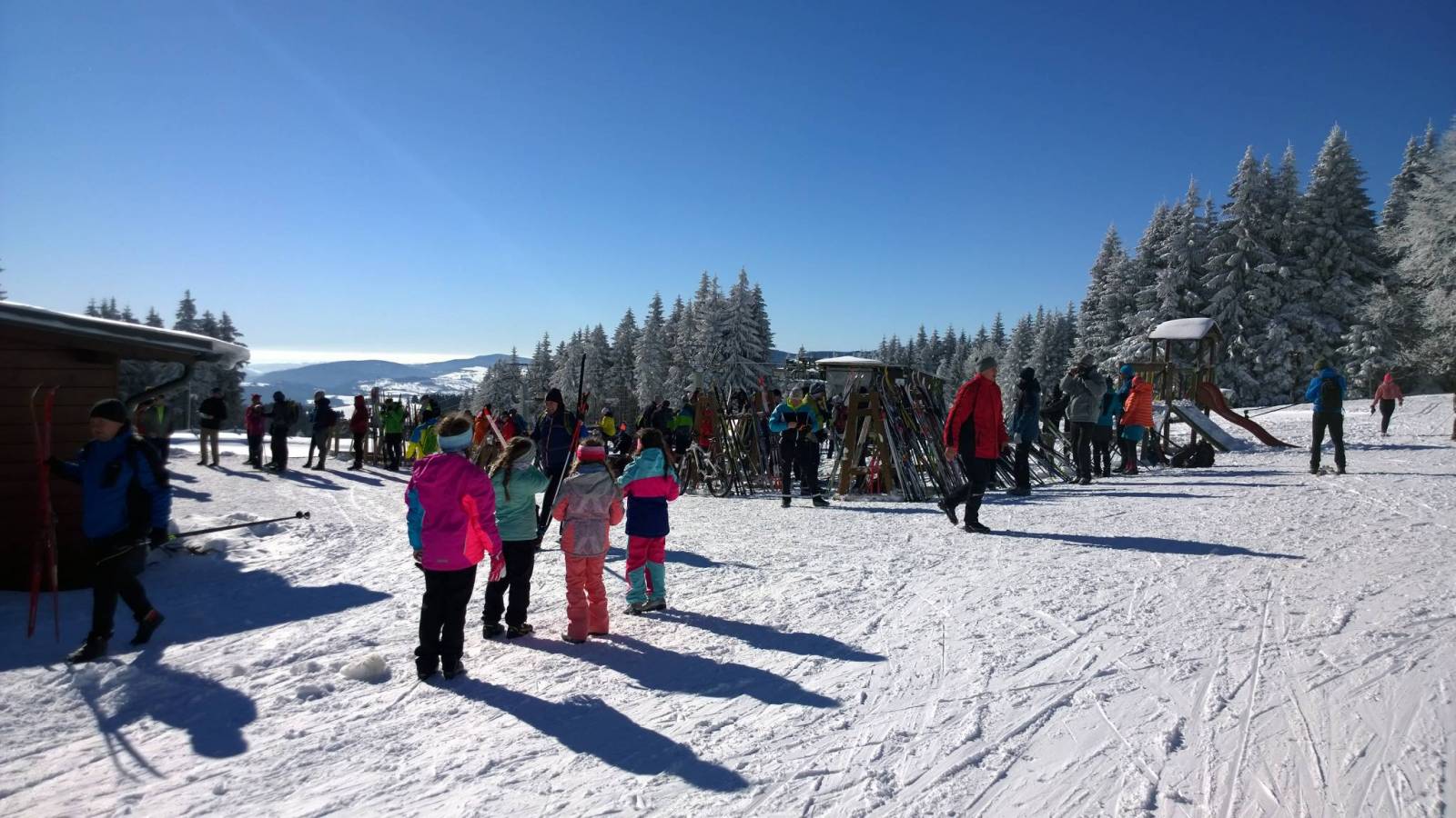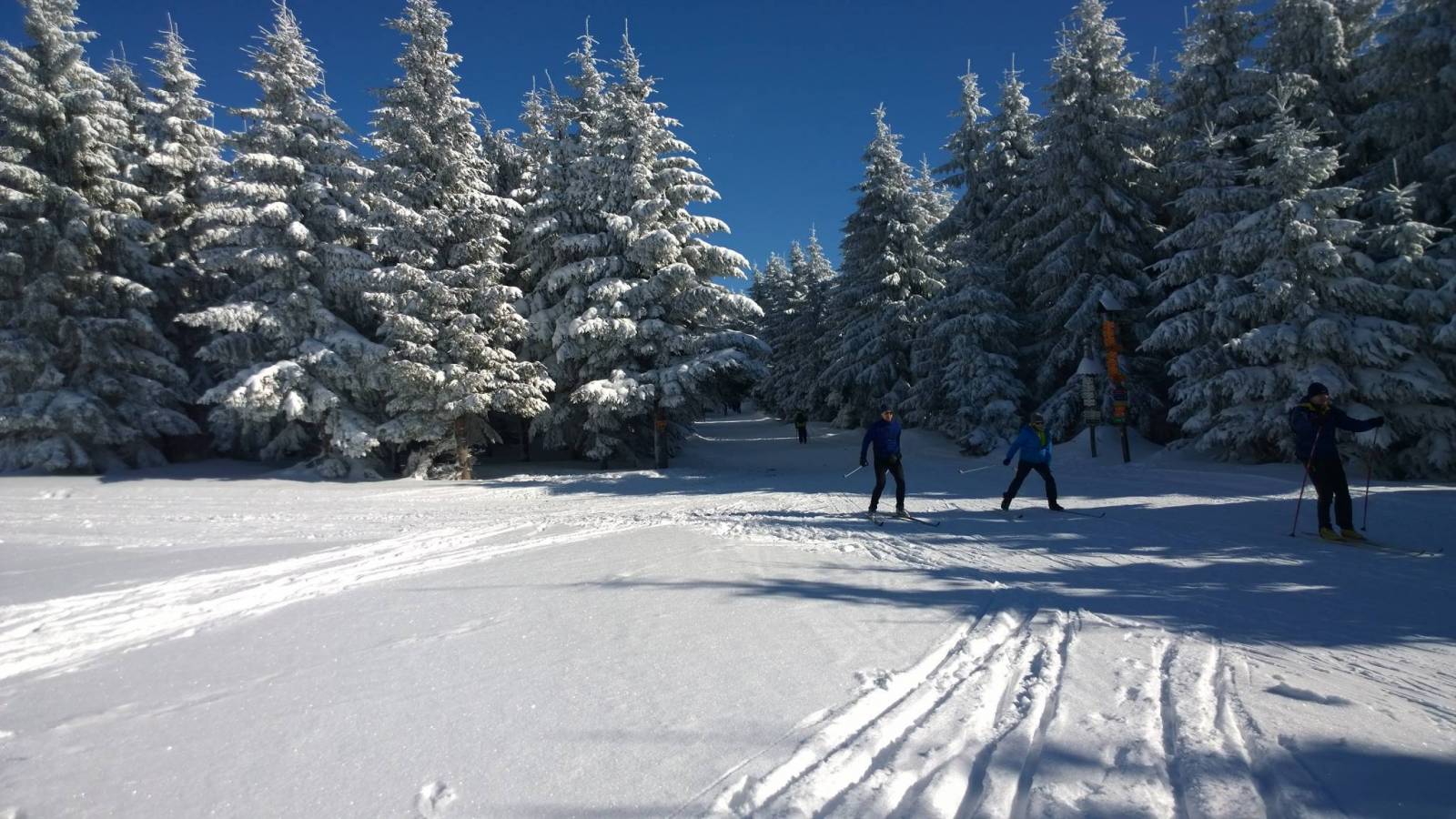Piękna , mroźna pogoda . Już od rana na parkingu w Bielicach mnóstwo samochodów . Narodowy sport polaków - biegówki , więc nic dziwnego . Trasy twarde , przygotowane przez ratrak , nic tylko szurać :) Dziś trasa w stronę Paprska . Czeskie schronisko , oblegane przez Czechów , ale też nie brakuje tam polaków . Z Wielkiego Szengena leśnym przesmykiem dostaje się do granicy a potem już przez Palas do Paprska . Jak zwykle koło schroniska tłumy . Ze względu na pandemię posiłki są wydawane przez dwa okienka . Korzystam z własnych kanapek , termos i w drogę powrotną