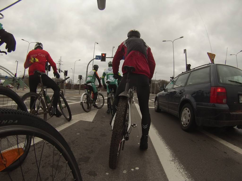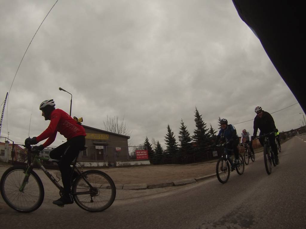 10 pod sprintem a tu jest już kilka osób. W sumie było nas 12 osób. na dłuższa pętlę skusiło się 8. po drodze grupka troche się podzieliła, a ja rzutem na taśmę postanowiłem zaliczyć pierwszą w tym roku setkę - udało się dzięki małej pętelce pod domem:)