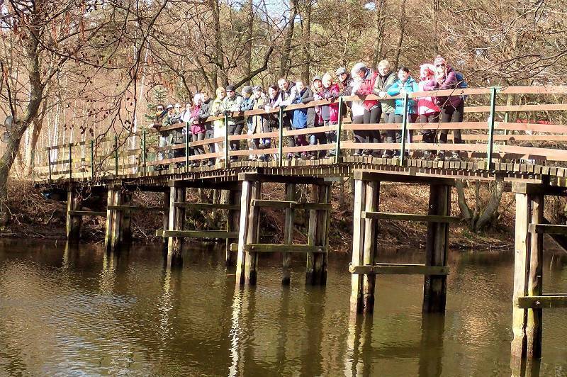 Nasyceni ruszamy dalej. Żegnamy się z ogromnym akwenem tzw. Kaszubskiego Morza i zagłębiamy się w głuszy wiecznie zielonych lasów Wdzydzkiego Parku Krajobrazowego. Piękne barwy uzupełniają grządki suchych po zimie wrzosów – wrócimy tu jak będą kwitnąć, we wrześniu! Przemierzając pośród iglaków udajemy się w kierunku jezior: Lipno i Lipionko, nad którymi góruje platforma widokowa. Mniejsze jeziorko nadal pokrywa tafla lodu, na większym bliżej już do wiosny. Podziwiając cudowne widoki robimy kolejny piknik. Z plecaków ponownie wyjmujemy przygotowane w domu pyszności. Jest też herbata bądź kawa z termosu, aż ciężko ruszyć się dalej.