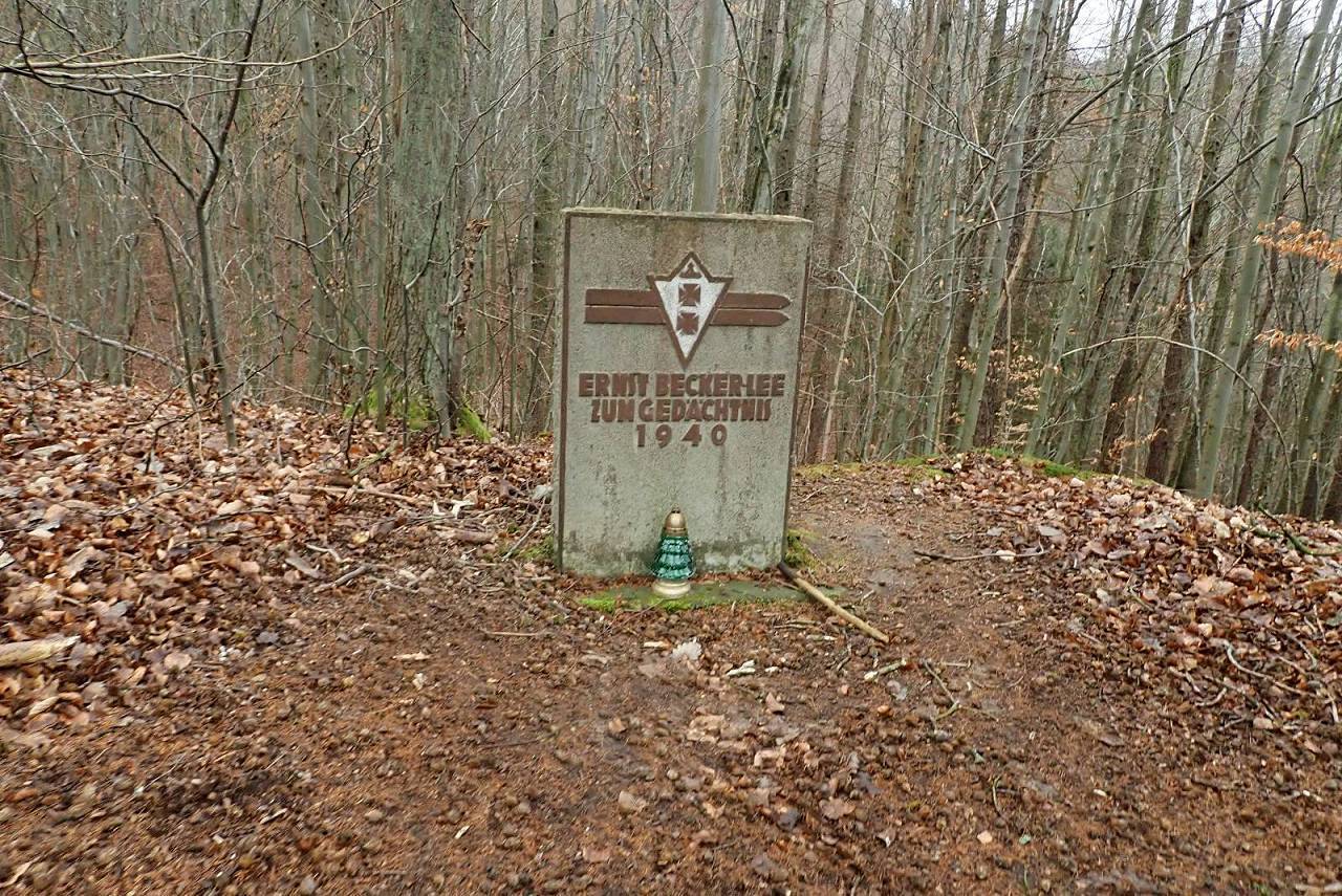 Niestety, nie wszystkie skoki na oliwskiej skoczni kończyły się sukcesem. W 1940 roku upadł śmiertelnie niemiecki zawodnik Ernest Becker-Lee. Jego śmierć upamiętnia płyta granitowa, którą zobaczyć można po wspięciu się na liczące ponad 110 m n.p.m. przeciwległe do skoczni wzniesienie.