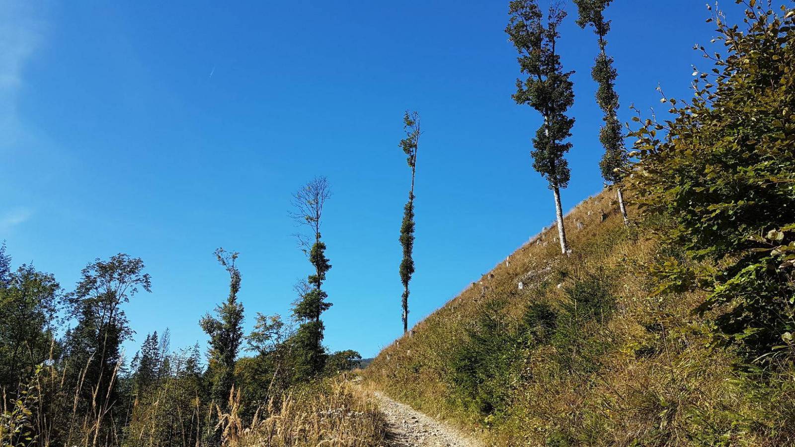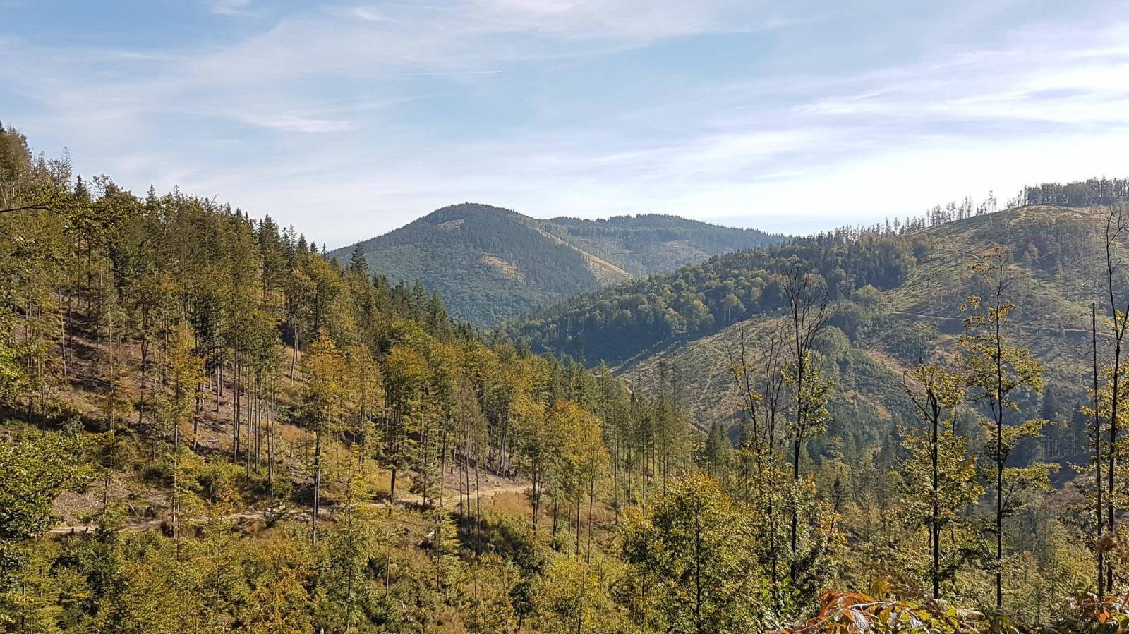 W drodze powrotnej poszedłem czerwonym szlakiem prowadzącym wzdłuż granicy polsko-słowackiej, w kierunku Przegibka i Wielkiej Rycerzowej, a do Rycerki zszedłem nieznakowanym szlakiem wzdłuż rezerwatu przyrody Śrubita (ciekawostką jest, że w rezerwacie znajduje się prawdopodobnie najwyższe drzewo w Polsce - świerk o wysokości 51,8 m).