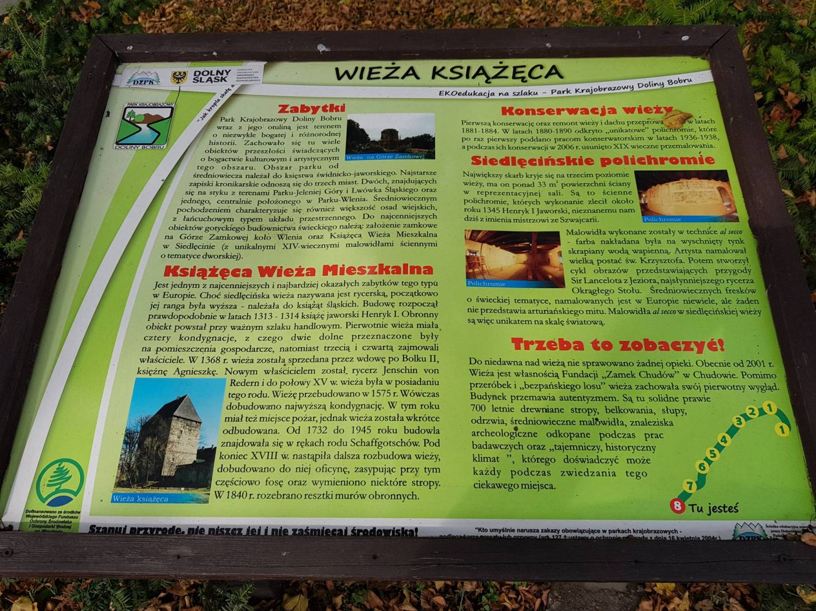 Wieża Książęca w Siedlęcinie została wzniesiona z inicjatywy księcia Henryka I jaworskiego w latach 1313-1315 i jest jedną z największych wież tego typu w Europie Środkowej. Zachowały się w niej najstarsze w Polsce drewniane stropy, natomiast w Wielkiej Sali na II piętrze podziwiać można jedyne na świecie średniowieczne malowidła (zachowane in situ), na których widnieje legenda o sir Lancelocie z Jeziora – jednym z legendarnych rycerzy Okrągłego Stołu.