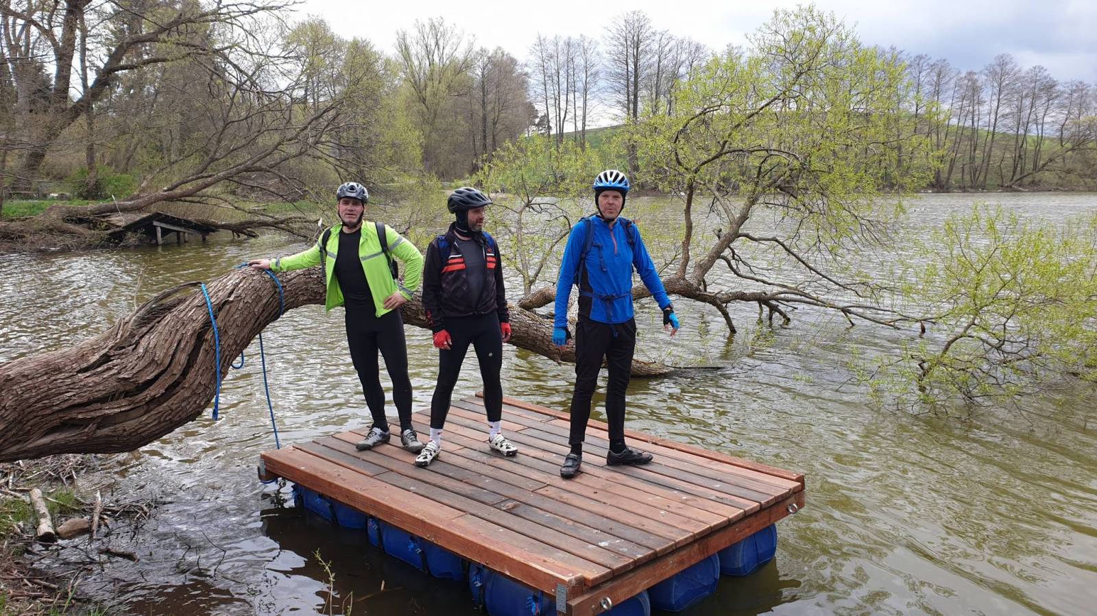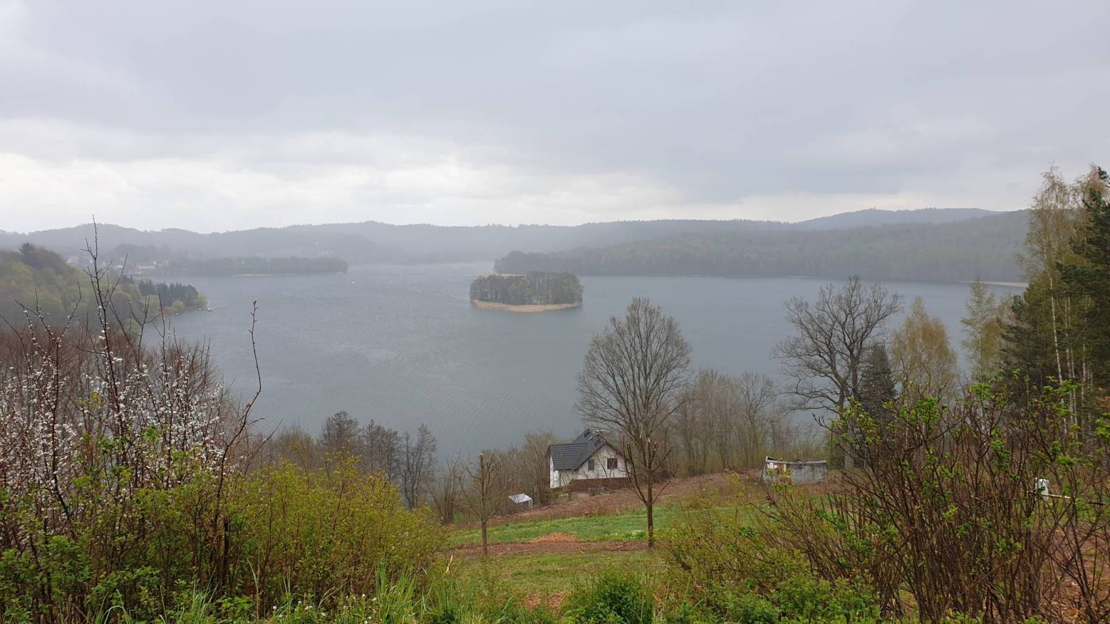 Potem podjazd na budynek-rondo skąd można zobaczyć panoramę jeziora Ostrzyckiego. Ponieważ się rozpadało i kolega zaliczył awarię wózka cała ekipa się zawinęła i wróciła na parking.