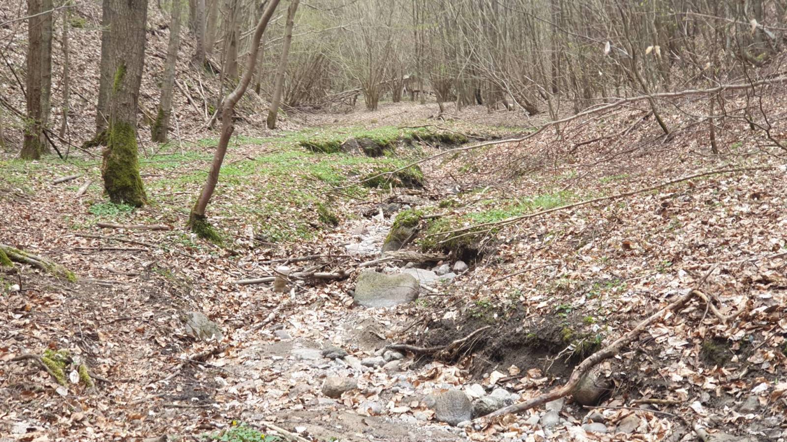 I Poszli...start z parkingu pod Wieżycą przez samą Wieżycę a potem przez wysuszone kamieniste dno rzeki.