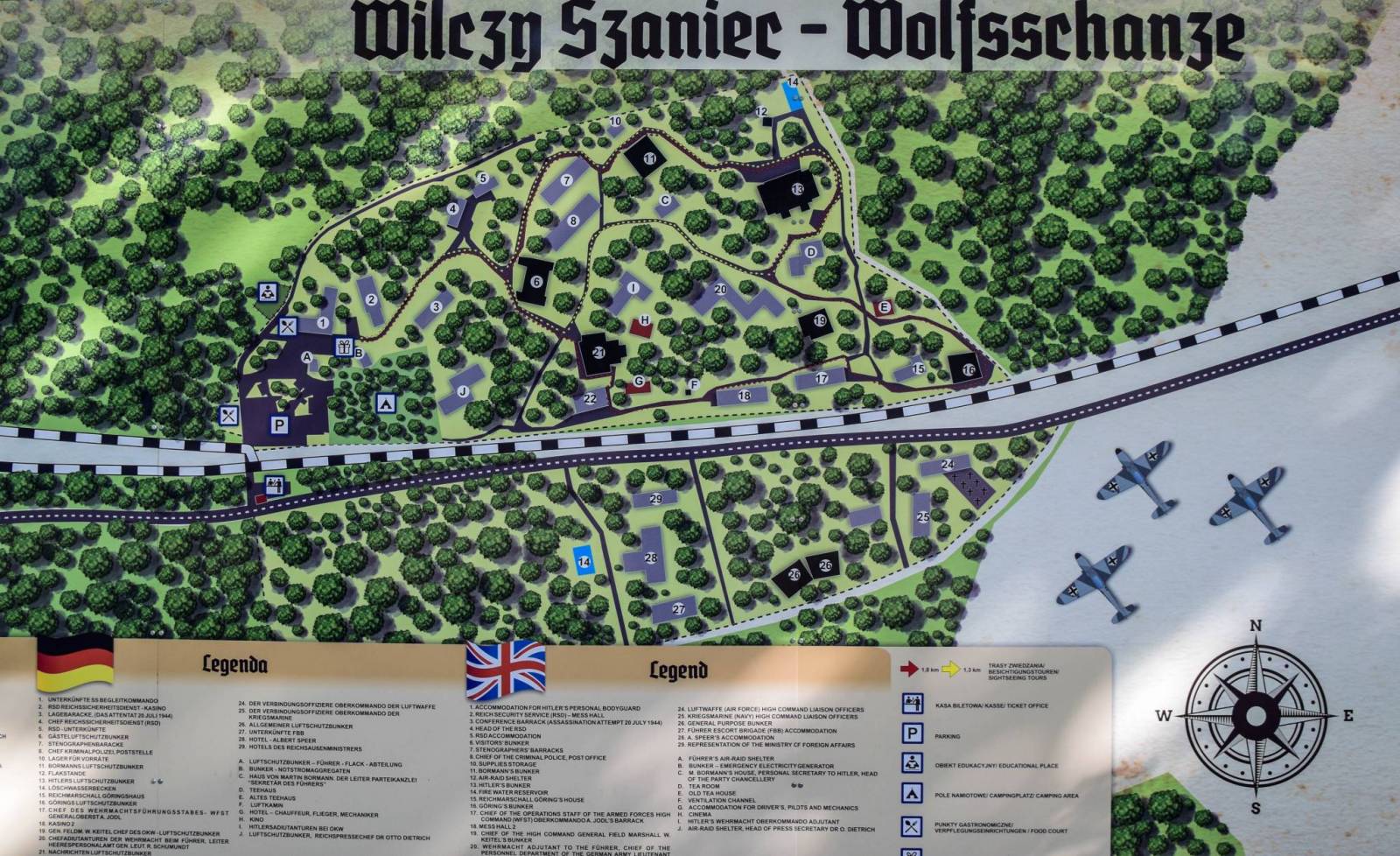 W samym sercu Mazur znajdują się porośnięte lasem ruiny kwatery głównej Adolfa Hiltera. Zamaskowane miasteczko w lesie - 200 budynków: schrony, baraki, 2 lotniska, elektrownia, dworzec kolejowy, urządzenia klimatyzacyjne, wodociągi, ciepłownie, dwie centrale dalekopisowe.
