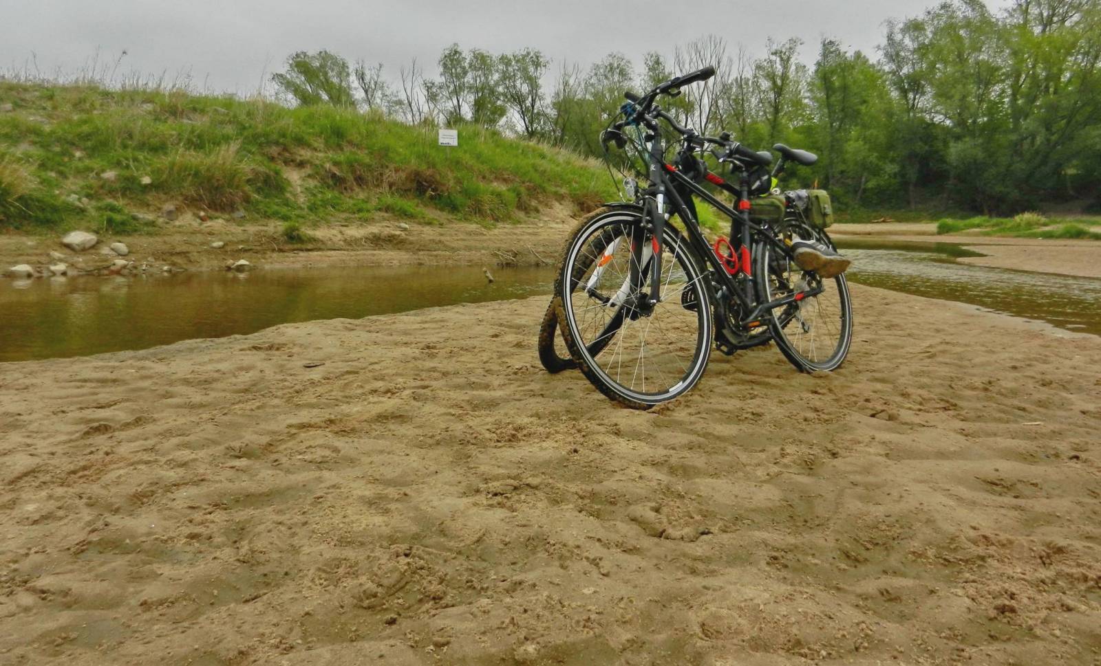 Tu zrobiliśmy to bardziej z obawy o rowery, nie chcieliśmy ich zostawiać daleko na brzegu,