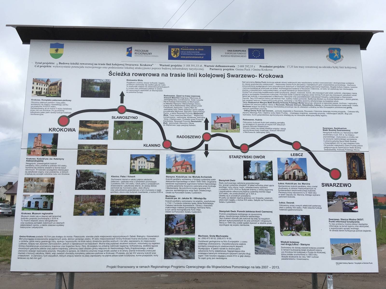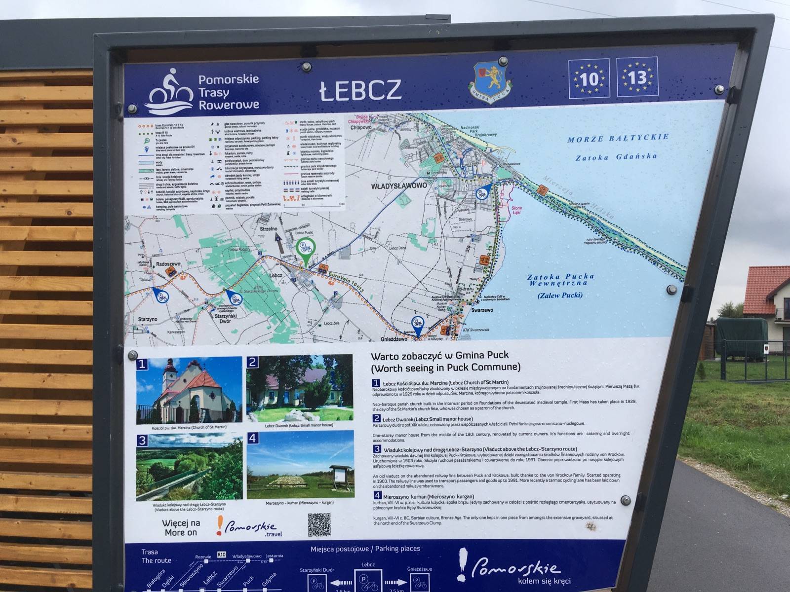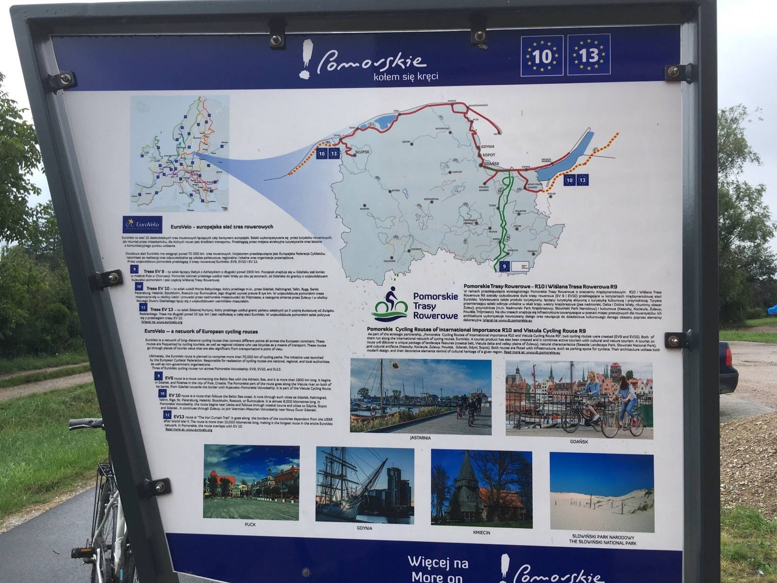 Mapa całego województwa pomorskiego z aktualnym przebiegiem dróg. Opisano ich numerację i kilometraż, zaznaczono również stacje paliw. Miejsca ciekawe, warte odwiedzenia podkreślono kolorem żółtym. Mapa posiada opisaną siatkę geograficzną WGS 84 przez co można ją zastosować do urządzeń z GPSem. Na rewersie umieszczono indeks miejscowości (miasta, wsie, przysiółki, duże dzielnice) oraz mapki tematyczne z podziałem administracyjnym, kodami pocztowymi, ochroną przyrody i krainami goegraficznymi.