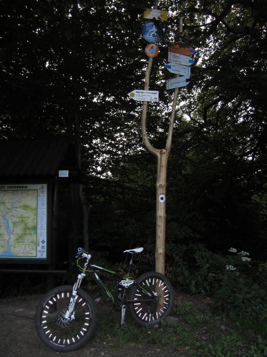 Tym razem traska z rodzaju trudnych. Górki większe to i wyzwania urosły :-). Plan to okrążenie jeziora Żywieckiego po drodze zaliczając parę górek :-). Początek traski to Lipnik - dzielnica Bielska Białej. Stąd szutrową drogą docieramy do asfaltu i odnajdujemy początek czarnego szlaku turystycznego i z nim dotrzemy na Przełęcz Przegibek. Zmieniamy szlak na kolor niebieski i pniemy się w górę aż dotrzemy do szczytu Magurka. Nadal pilnujemy niebieskiego szlaku turystycznego aż dotrzemy do zapory w Tresnej. Uwaga na zjazd niebieskim szlakiem. Od szczytu Suchy Wierch szlak jest zniszczony przez zrywkę drzewa i wymaga bardzo dużej koncentracji aby nie zaliczyć wywrotki. Od zapory zaczynamy realizację głównego planu czyli okrążanie jeziora. Oczywiście należy zaliczyć miasto Żywiec z jego pięknymi zabytkami a następnie kontynuujemy dalsze okrążanie :-). W pobliżu zapory szukamy zielonego szlaku turystycznego, którym rozpoczniemy wspinaczkę. Niestety zielony szlak również dał mi się we znaki :-) Zaznaczyłem na mapie miejsce od którego są prowadzone prace leśne i teren wygląda jak po cyklonie :-). Wraz ze szlakiem wyjeżdżamy na asfalt ( trochę go będzie ). Dopiero w Wilkowicach mijając szpital kolejowy napotkamy po prawej stronie czarny szlak turystyczny. I tutaj popełniłem mały błąd, zgubiłem szlak i musiałem improwizować ale na szczęście było po czym jechać :-). Teraz już tylko Straconka i kierunek Lipnik do punktu startu. 55% to bezdroża.