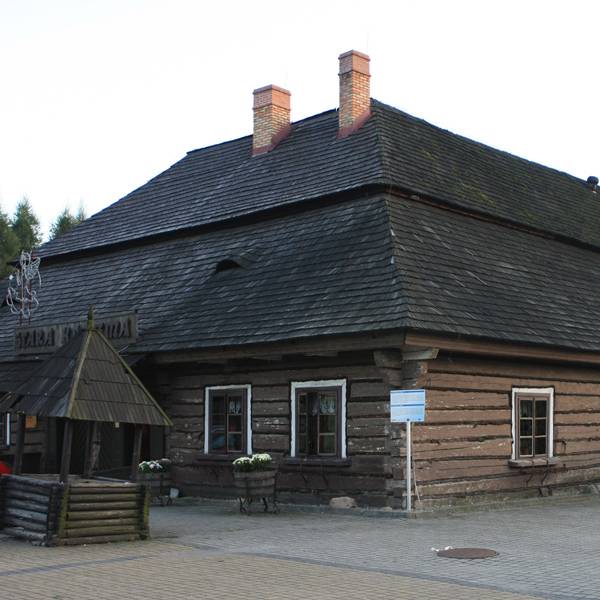 Wychodzimy z parku wprost na Kościół Katedralny Narodzenia NMP (zbudowano go w 1. połowie XV wieku, od 1992 r. kościół pełni funkcję konkatedry Diecezji Bielsko-Żywieckiej). Skręcamy w prawo i podążamy drogą 945 za znakami na Korbielów. Po kilku kilometrach za znakami skręcamy na drogę do Trzebini. Tu droga powoli pnie się do wsi Trzebinia Górna (ładne widoki na Kiczorę- 838 m n.p.m. czy Skałę - 946 m n.p.m.), aby znów zjechać w dół do Juszczyny (skręcamy w lewo). Po kilometrze, po lewej bardzo ciekawy drewniany kościółek Nawiedzenia NMP z lat 1924-27. Po wyjechaniu z Juszczyny pniemy się w górę na Przełęcz u Poloka, skąd rozciąga się wspaniały widok nawet na masyw Babiej Góry. Na przełęczy dołączamy do czarnego szlaku rowerowego, który zaprowadzi nas do Jeleśni. Zjeżdżamy w dół do Sopotni Małej, ważne aby na pierwszym skrzyżowaniu skręcić w lewo i już później cały czas prosto do głównej drogi 945. Skręcamy dalej za czarnym szlakiem i po kilometrze dojeżdżamy do centrum Jeleśni z zabytkową Starą Karczmą (najcenniejszym zabytkiem potwierdzającym wielowiekową historię Jeleśni. Jest to jedna z ostatnich oryginalnych karczm w tej części Europy, należąca do najstarszego typu karczmy polskiej o konstrukcji zrębowej oraz cennych walorach historycznych i kulturowych. Data wybudowania karczmy z drzewa modrzewiowego jest trudna do ustalenia. Pewne jest, że w 1608 roku Mikołaj Komorowski założył w Jeleśni folwark, a w niedługim czasie wybudowano okazałą karczmę pańską, która przetrwała do naszych czasów).