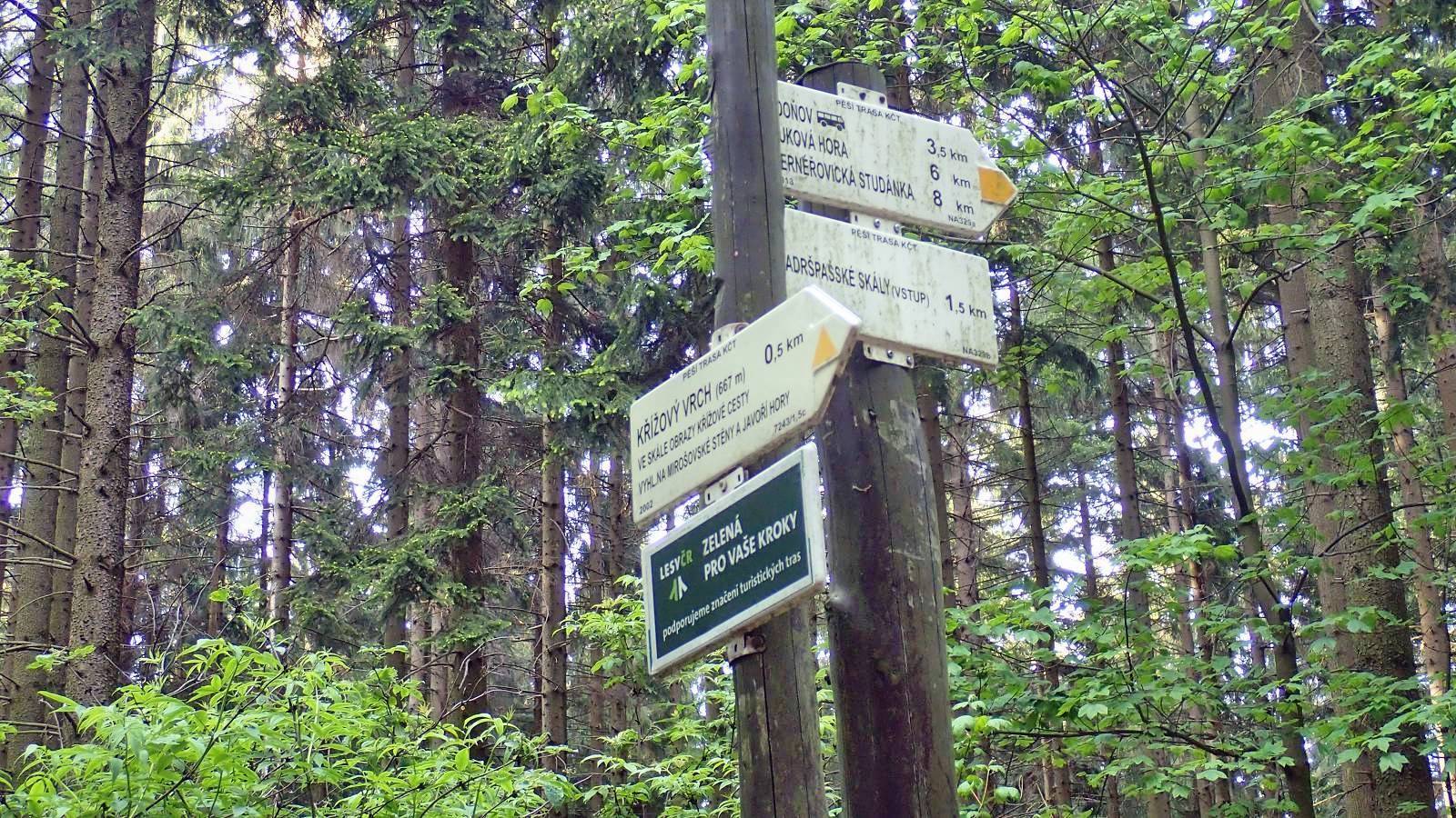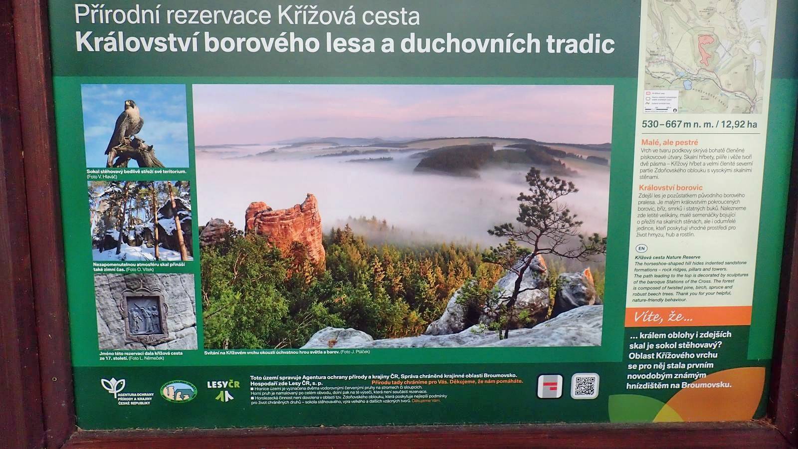 Mapa obejmuje bardzo atrakcyjną turystycznie czeską część Gór Stołowych. Podobnie jak w polskiej części masywu, także ten region obfituje w przeróżne ciekawe formacje skalne. Ciekawym szczytem Broumowskich Ścian jest leżąca nieopodal Koruna z punktem widokowym i interesującymi formacjami skalnymi na szczycie, natomiast za największą atrakcję uchodzi góra Hvězda (674 m n.p.m.), na której szczycie, na skalnej krawędzi, znajduje się barokowa kaplica Matki Boskiej Śnieżnej, wykonana z piaskowca ciosowego (zbudowana na podstawie pięcioramiennej gwiazdy). Miasta skalne znajdujące się w Adršpašskoteplickich skálach są jednym z najbardziej znanych piaskowcowych terenów wspinaczkowych na świecie. Między labiryntami form skalnych przebiega płatna trasa turystyczna niewymagająca żadnej wprawy przy chodzeniu po górach, składająca się z wygodnych schodków, poręczy, drabin i miejscami sztucznie wybudowanych chodników i platform. W pobliżu znajduje się też Teplickie Skalne Miasto – nieco mniej znane od Adršpašskoteplickich skál, lecz rozleglejsze, wyższe i bardziej dzikie.