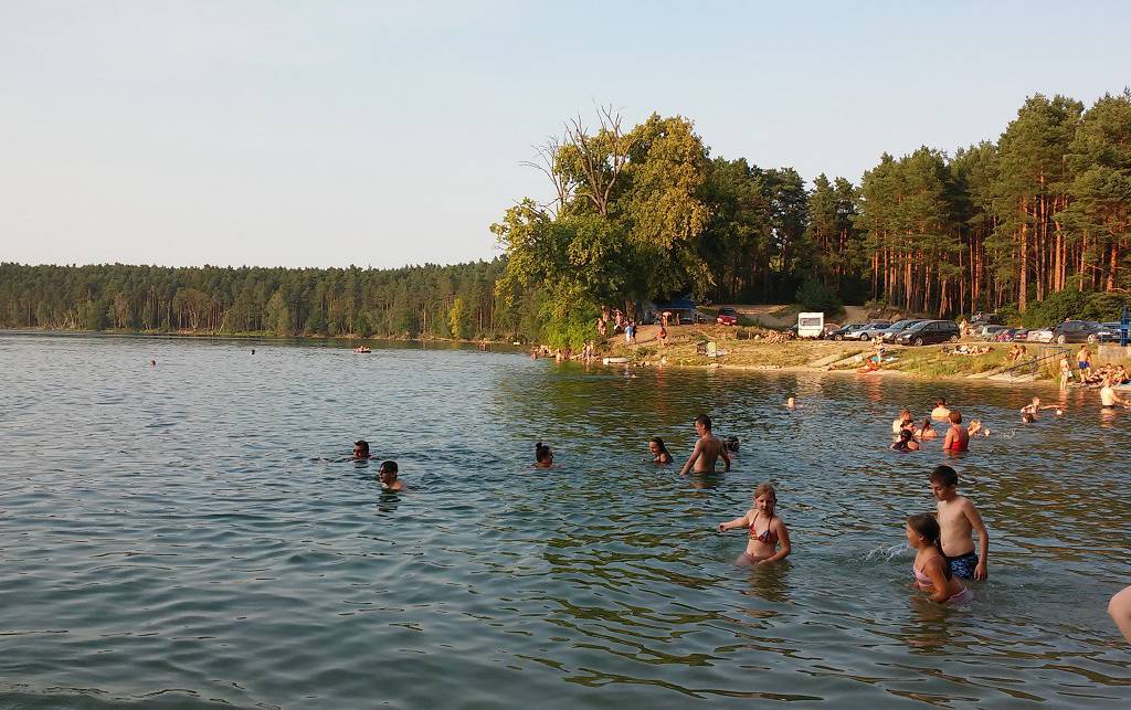 Z Dębna nad jezioro Wielkie koło Witnicy. Trasa w całości prowadzi przez las. Jedziemy całą rodziną i na całej długości trasy wysłuchuję jaka ta droga jest kiepska. Po dotarciu nad jezioro dzieci szybko zapominają o niedogodnościach wycieczki bo tu atrakcją jest woda i plaża.