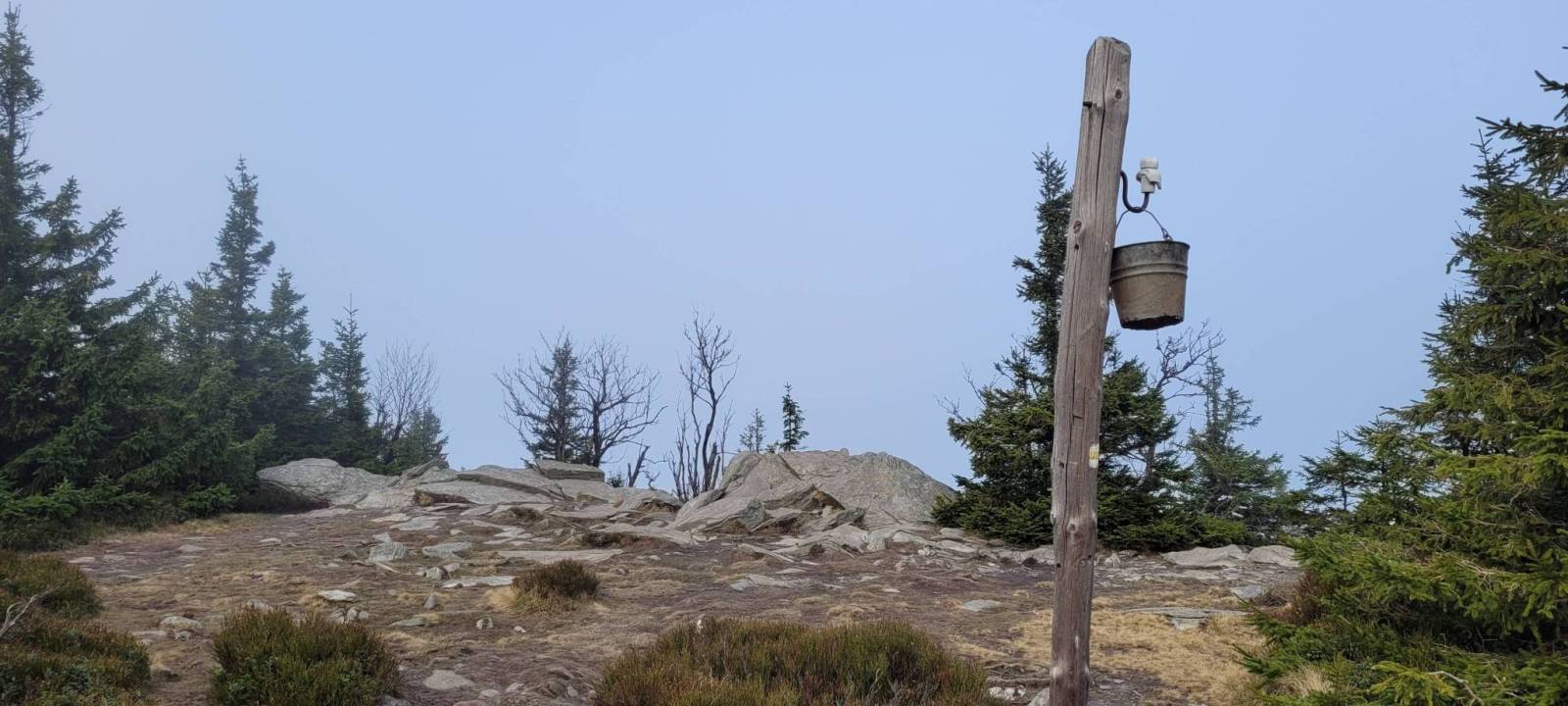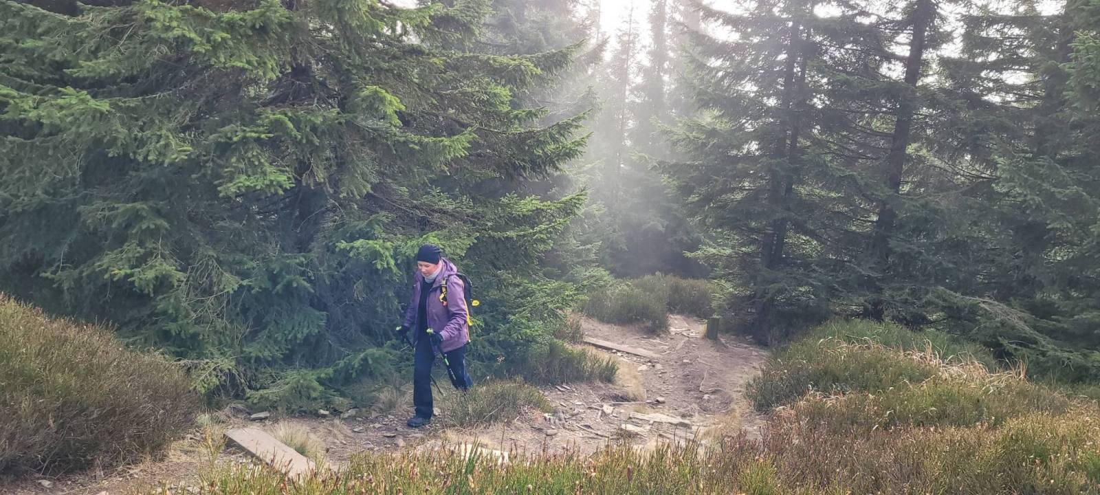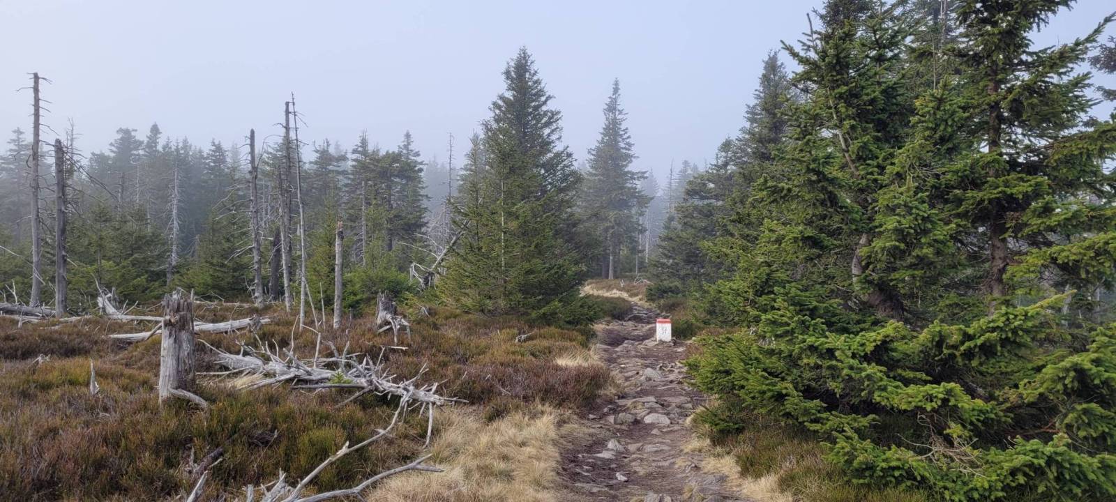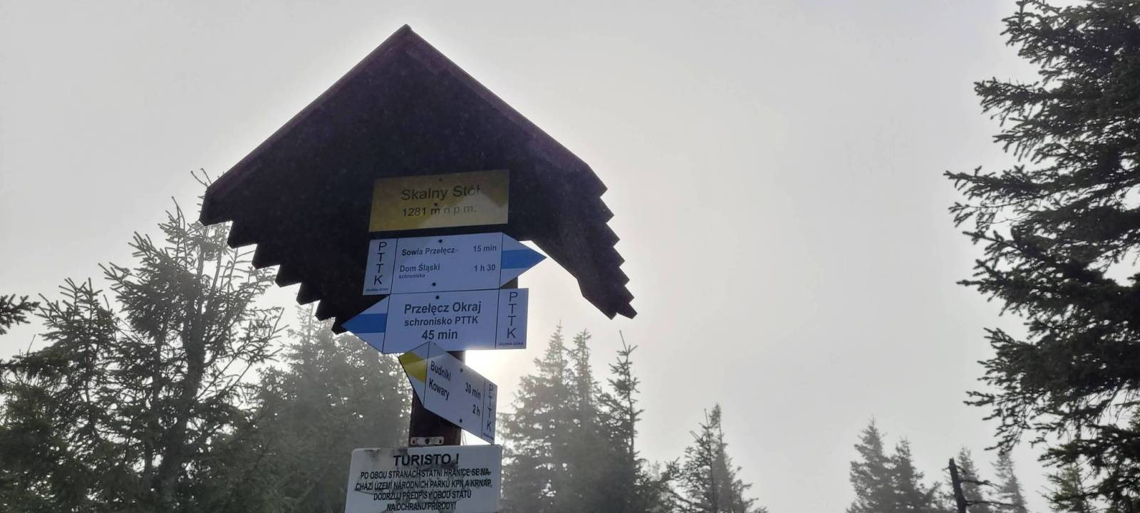 Ruszamy na podbój Śnieżki niebieskim szlakiem pieszym przez Skalny Stół, skąd rozpościerają się niesamowite panoramy, niestety nie dzisiaj..., mgła zdominowała widoki.