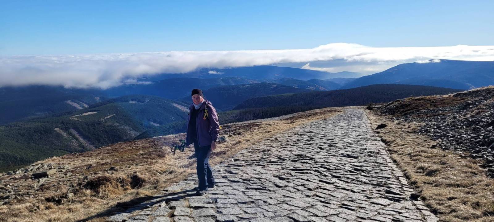 Śnieżka przywitała nas niesamowitą pogodą i przepięknymi panoramami. Po krótkim odpoczynku ruszamy w drogę powrotną, tym razem przez Czechy żółtym szlakiem pieszym i dalej zielonym do Schroniska Jelenka.