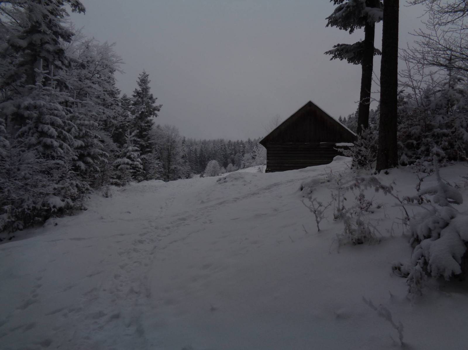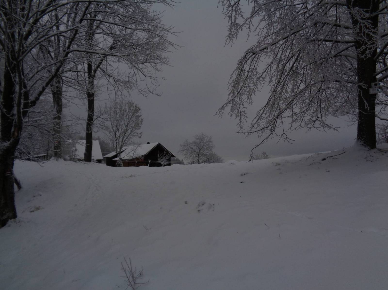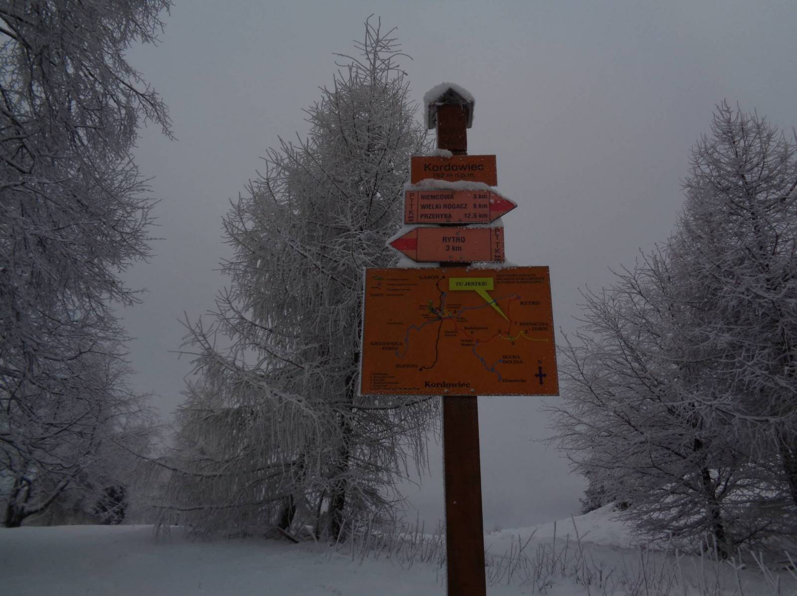 W połowie grudnia na zakończenie sezonu odbyłem wycieczkę z Rytra do Piwnicznej. Aura sprzyjała popadało troszkę śniegu i zrobiło się biało. Z Rytra ruszamy szlakiem czerwonym i pniemy się pod górę, jest ślisko zwłaszcza na drogach. ale po wyjściu na grzbiet już jest spokojnie. Zmierzamy nim do Kordowca i dalej na hale Niemcową. Śniegu jest coraz więcej a nowy zaczyna padać czyli aura w pełni zimowa :). Dalej czerwonym idziemy do Wielkiego Rogacza. Tu przechodzimy na szlak niebieski i schodzimy do przełęczy Obidza. Tu odbiłem w dół do Bacówki na Obidzy gdzie zamierzałem coś zjeść i odpocząć, ale niestety Bacówka zamknięta a karteczka informuje że jest otwarta tylko w weekendy :( niestety ja byłem w piątek i odbiłem się od drzwi. Wracam na przełęcz i dalej szlakiem zielonym idę na Eliaszówkę dojść spokojny szlak a na szczycie czeka nagroda wieża widokowa i wiata. Niestety z powodu mgły wic niebyło widać więc zrezygnowałem z wspinaczki na nią. Dalej szlak zielony stopniowo schodzi do Piwnicznej a tam gdzie jest bardziej stromo są porobione schody .
