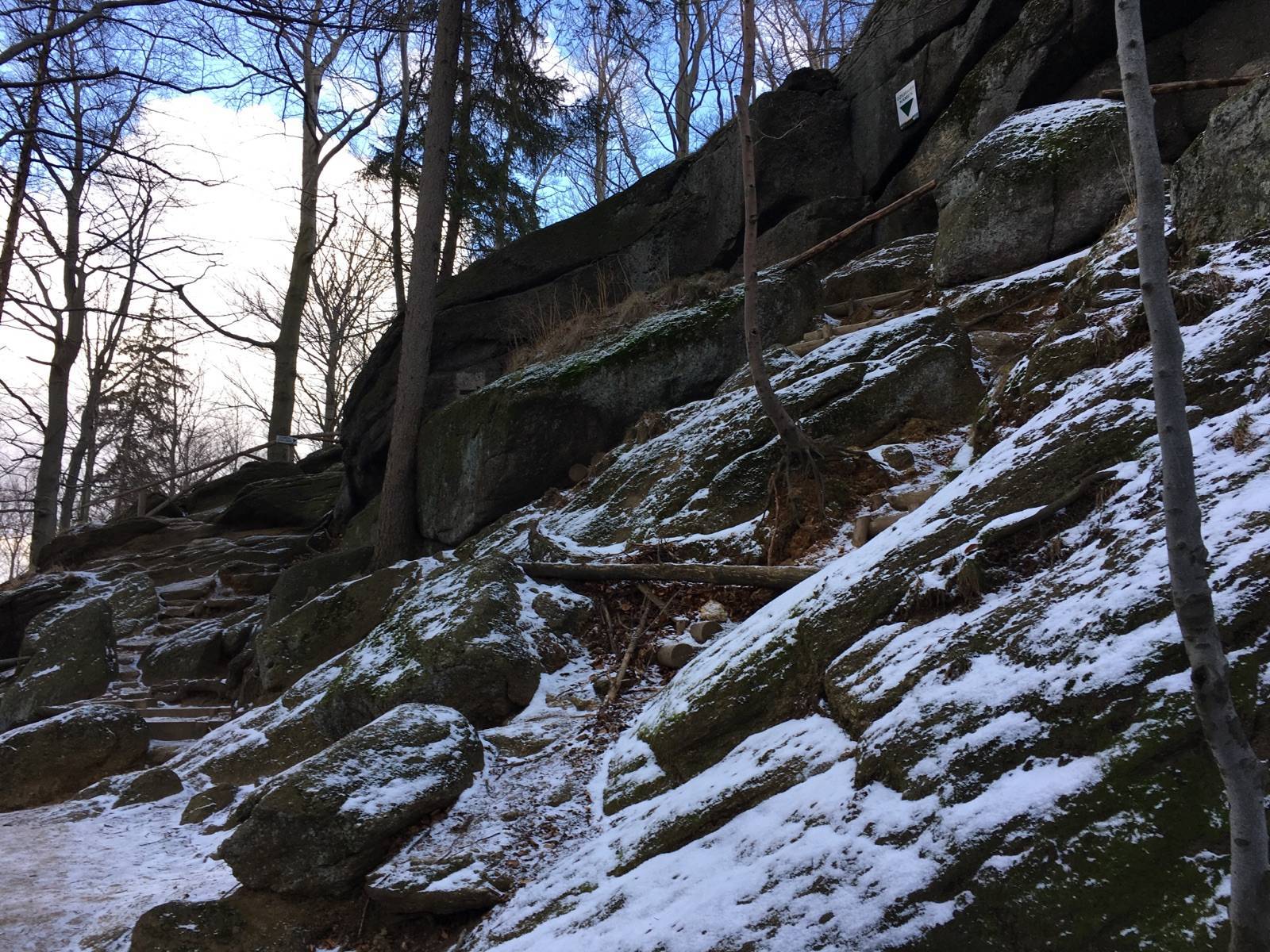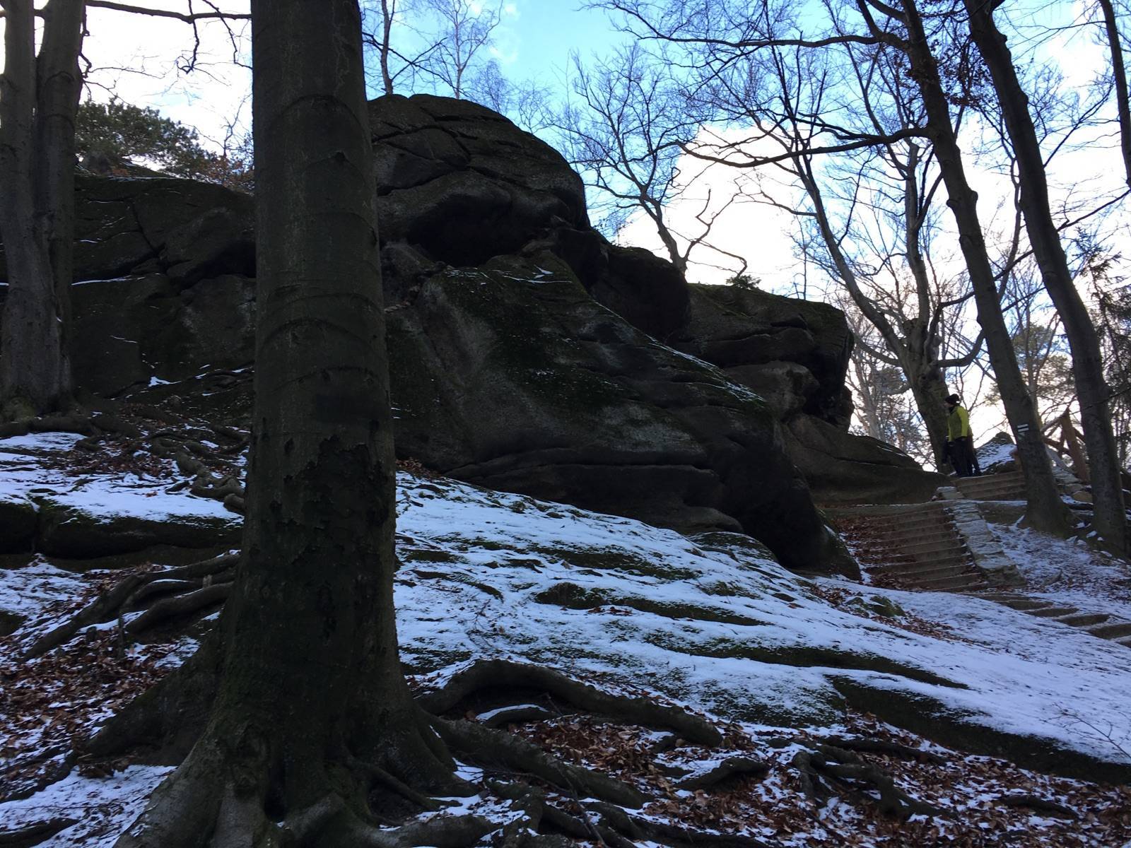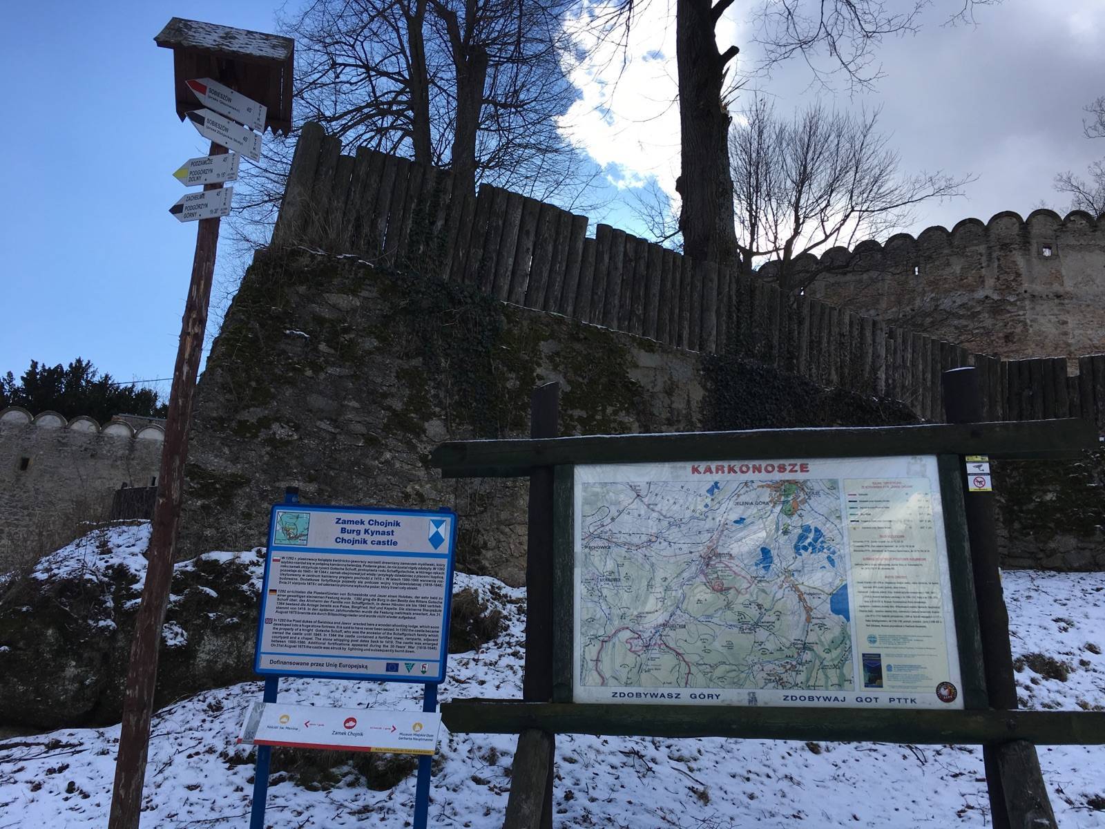 Trochę na przełaj na zamek Chojnik. Zamek bardzo ciekawy a widok z wieży wspaniały. Jaskinia Dziurawy Kamień ma długość około 20 metrów i można nią przejść wychodząc ponownie na szlaku czarnym trochę wyżej.