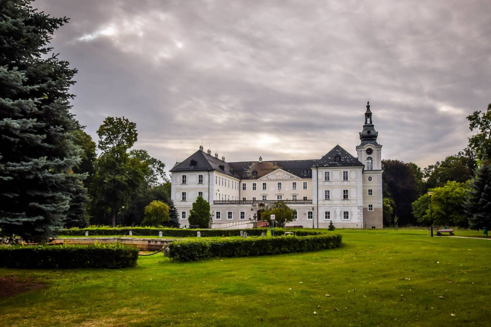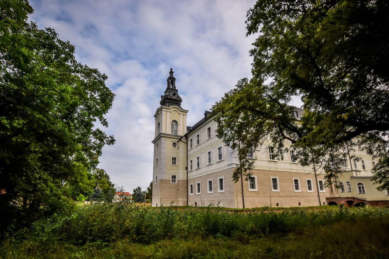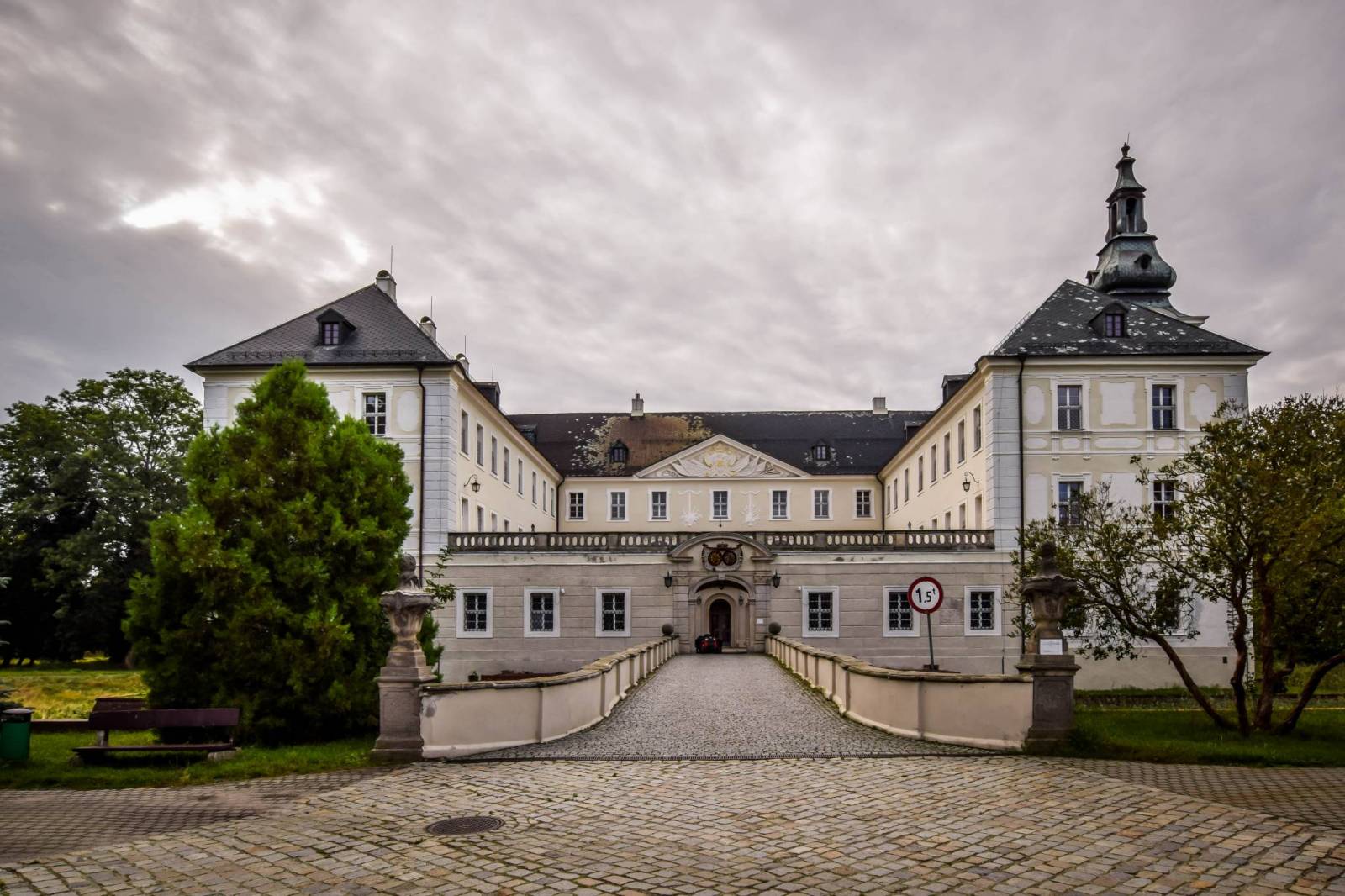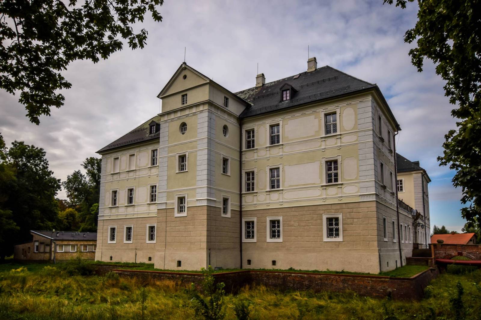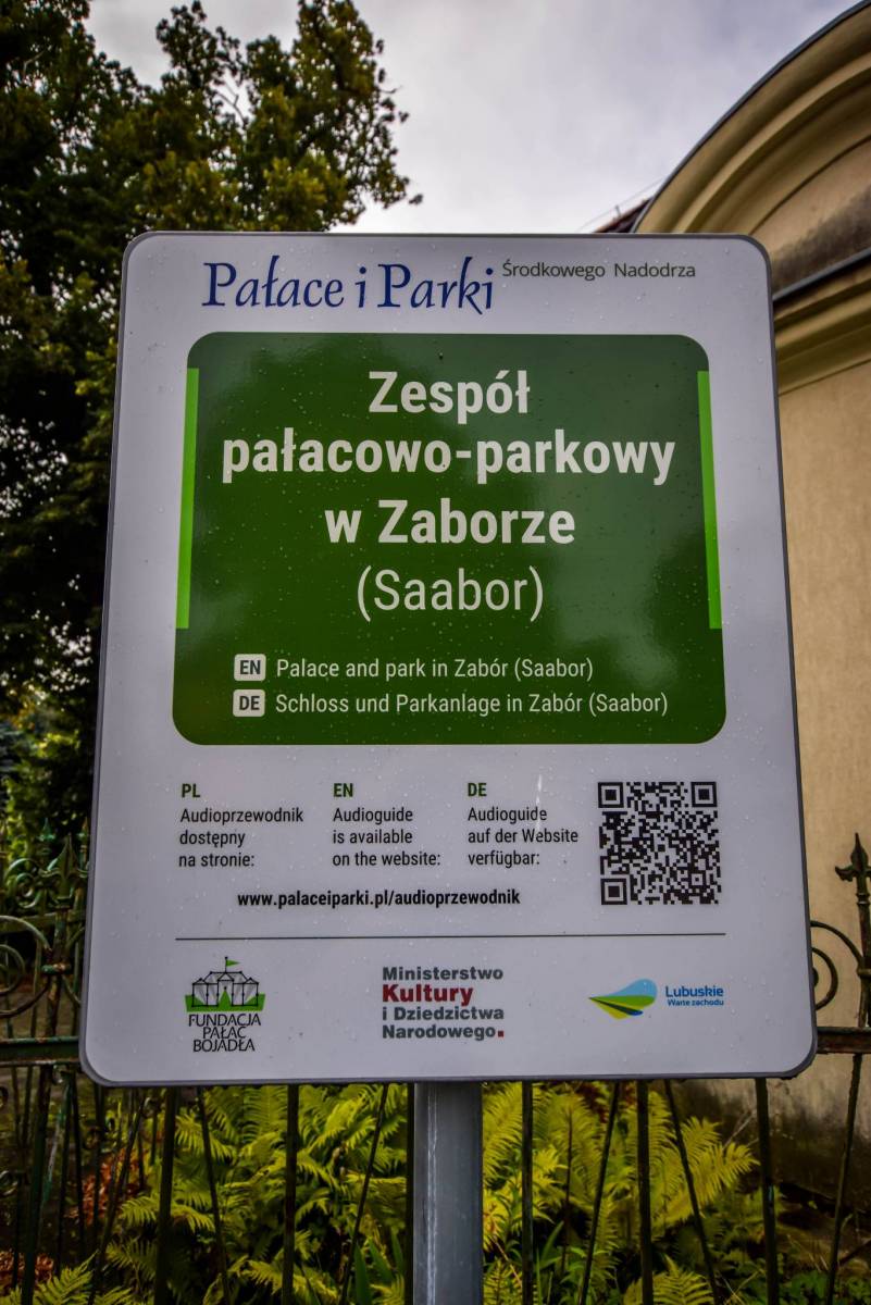Pałac w Zaborze położony jest w południowo-wschodniej części wsi, w zespole, w skład którego wchodzą m.in.: pięć barokowych oficyn, otaczających dziedziniec i park. Pałac stanowi dominujący i najstarszy element założenia. Otoczony jest dobrze zachowaną suchą fosą, nad którą przerzucone są od strony podwórza i ogrodu murowane mosty.