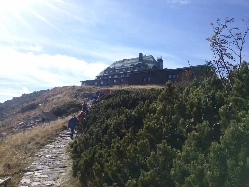 Na Szrenicę wjechaliśmy wyciągiem prawie na sam szczyt więc tej trasy nie ma ale z samego schroniska do Szklarskiej jest zapis powrotu. A powrót był przez wodospad Kamieńczyk.
