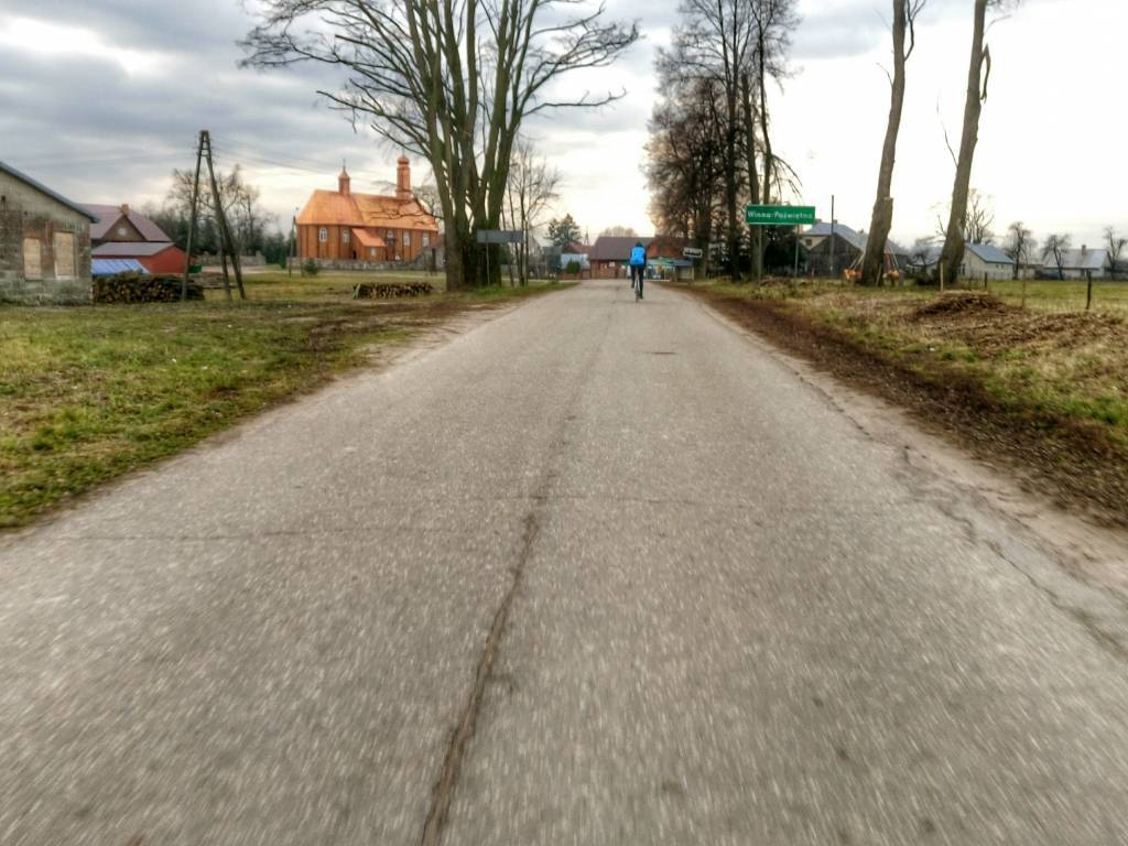 Jak dla mnie najgorszym odcinkiem jest dojazd z Małyszczyna do Korycin. Droga to żwirowy, bity, leśny dukt, który o tej porze roku miejscami zamienia się usiane kałużami, trudne do przejechania rowerami szosowymi grzęzawisko. Właśnie na ostatniej kałuży przed asfaltem zaliczyłem borowinową kąpiel.