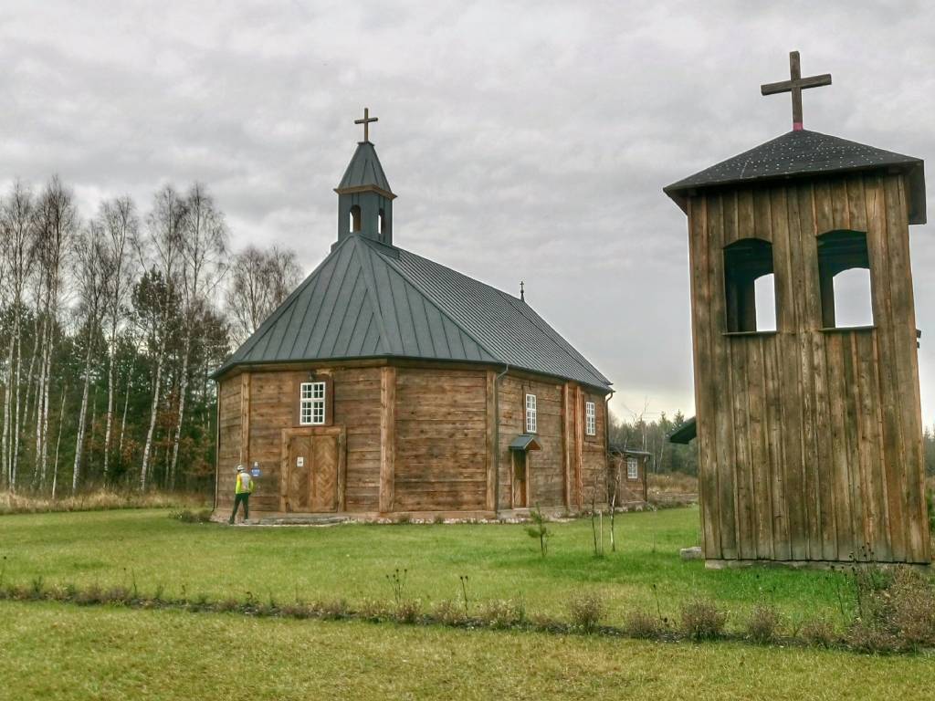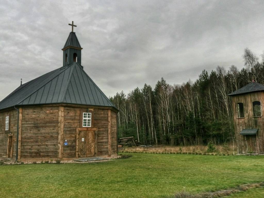 Wspominałem o "nowych" nabytkach. Rok temu do Ziołowego Zakątka został sprowadzony stary kościółek z pobliskiego Grodziska i usadowiony na polanie. Miałem jeszcze szczęście zobaczenia go w pierwotnym miejscu zbudowania i "odrestaurowania" w nowym. O ile blacha na dachu w starym kościele nie raziła, to teraz jakoś nie pasuje mi. Samo miejsce, gdzie go postawiono na nowo, wiele przez to zyskało.