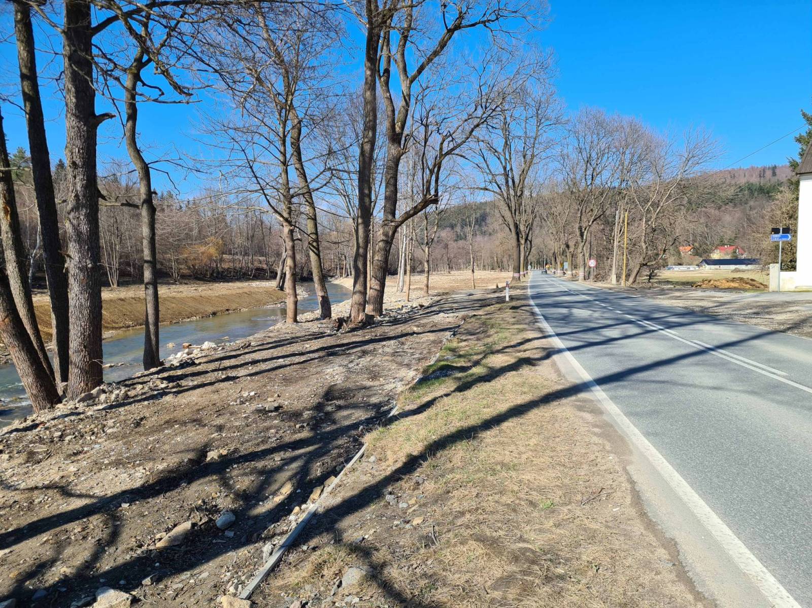 Niby piękny dzień , pełne słońce , chmur nie widać . A jednak zimno , zimny wiatr . Dlatego dziś krótka wycieczka po najbliższej okolicy . W Lądku Zdroju zaglądam do miejsc , których dawno nie widziałem . Arboretum , Źródło Jadwigi , Stawy Biskupie . Zajeżdżam też na ulicę Langiewicza w Lądku . Niewiele z niej po powodzi zostało , a ślady powodzi z września ciągle jeszcze mocno widoczne .