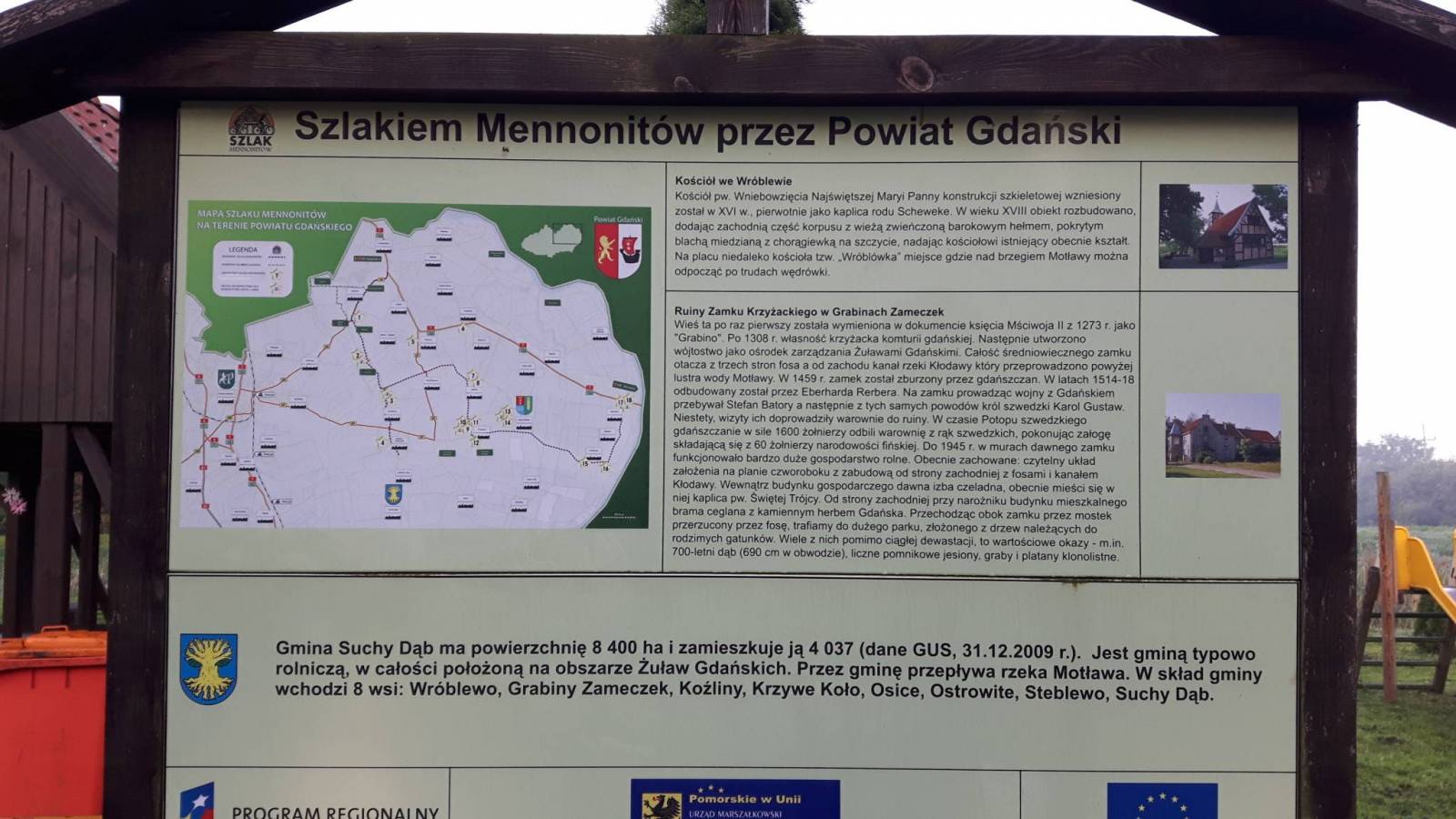 Minęło tydzień od srogich opadów ale w wielu miejscach ziemia nie zdążyła wchłonąć dużej ilości wody i widać było jak sprzęt rolniczy grzęźnie w dobrej żuławskiej ziemi.Po drodze można zobaczyć zabudowania ziemi żuławskiej jak