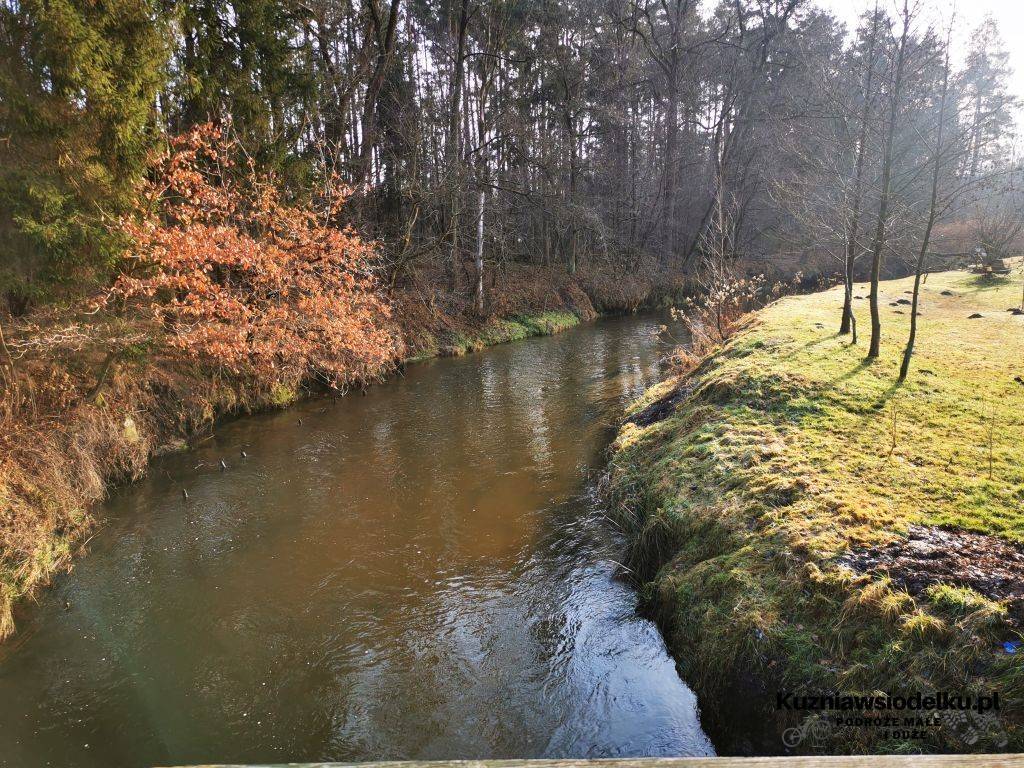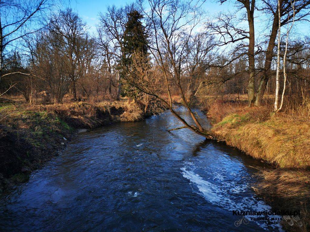 Na skrzyżowaniu koło stacji skręcamy w lewo. Koło kościoła prosto. Ścieżką pomiędzy domami docieramy do lasu gdzie skręcamy w lewo. Wzdłuż rzeki docieramy do drewnianego mostu przejeżdżamy po nim i zaraz w prawo. Tym razem rzekę mamy po swojej prawej stronie. Wyjeżdżamy ze ścieżki pomiędzy drzewami na asfalt. Jedziemy w prawo. Kolejny raz pokonujemy tory kolejowe. Na skrzyżowaniu jedziemy w stronę Kuźni Raciborskiej
